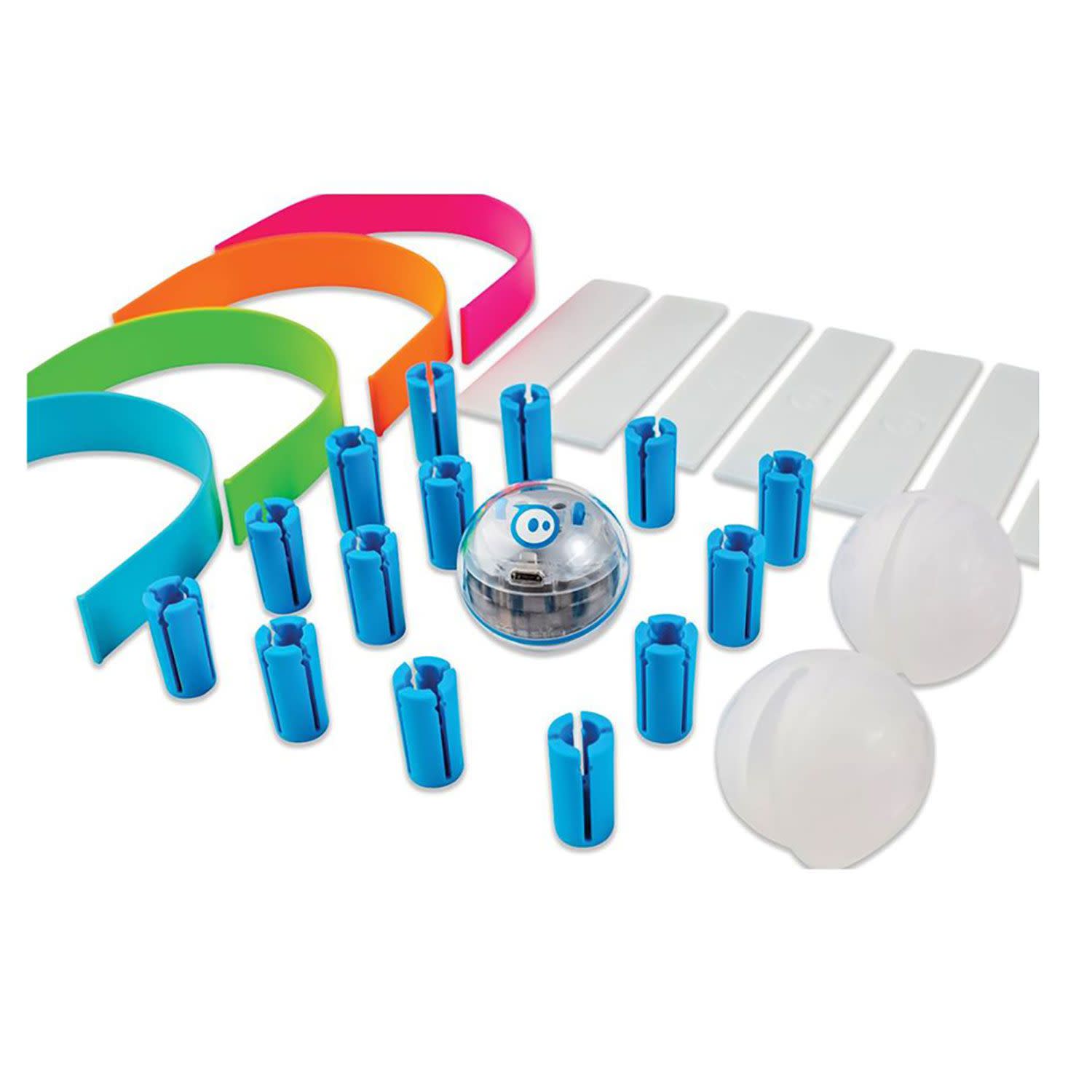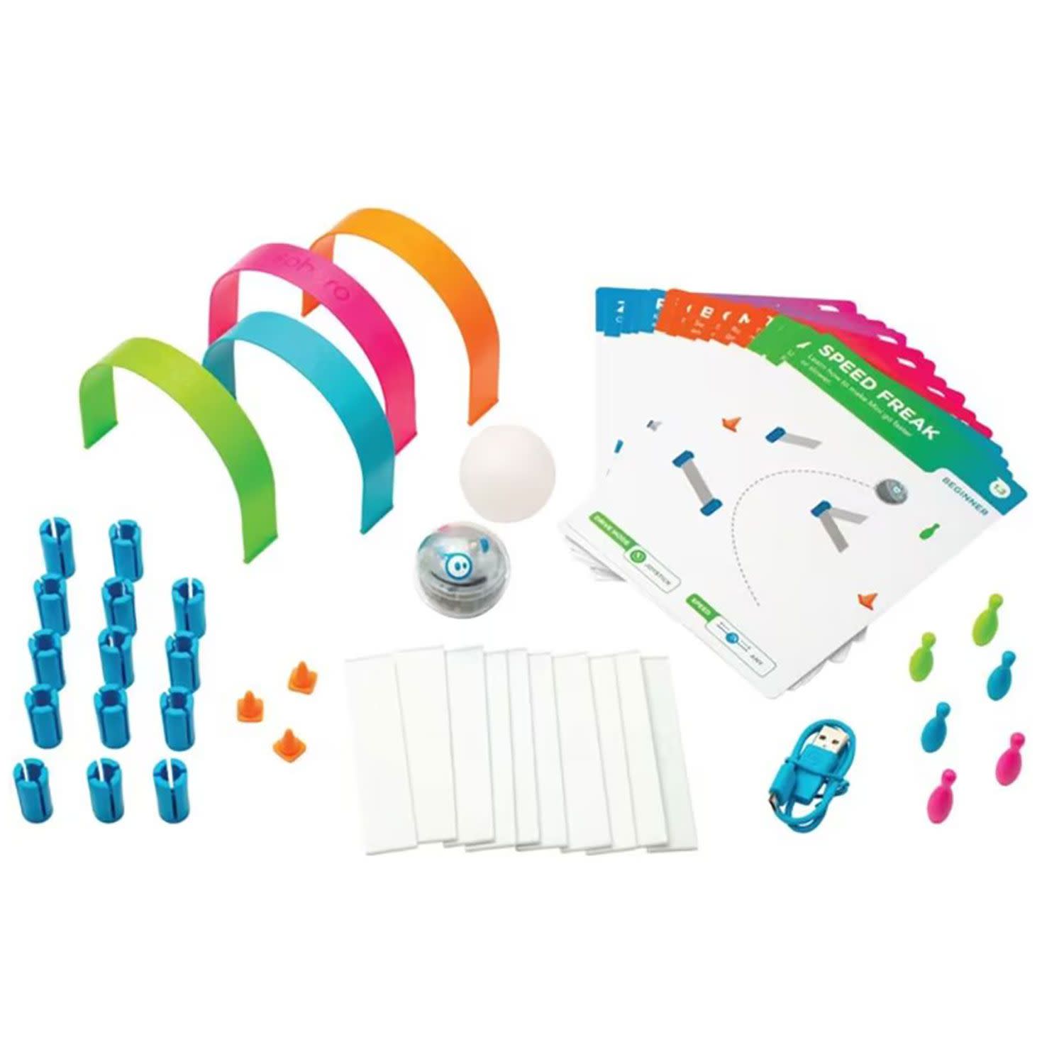 Το Sphero Mini Activity Kit περιλαμβάνει ένα Sphero Mini με διαφανές κέλυφος, σετ κατασκευών, 15 κάρτες δραστηριοτήτων STEM, κορίνες μπόουλινγκ, κώνους και άλλα, προσφέροντας ατελείωτες επιλογές διασκέδασης και μάθησης.