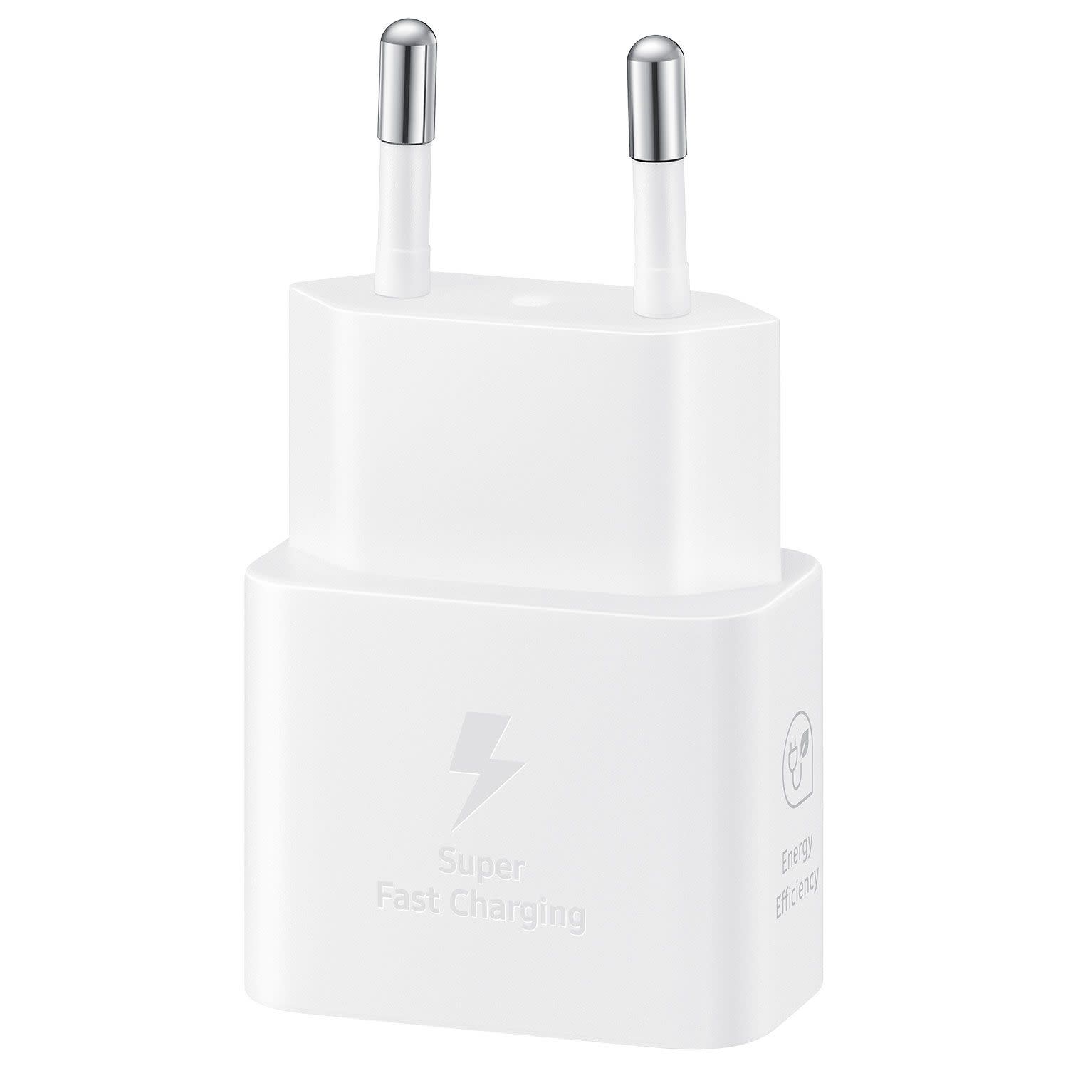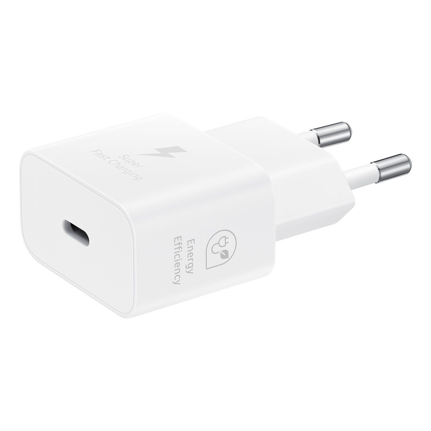 Φορτιστής USB Type-C της Samsung σε λευκό χρώμα με συνολική ισχύ εξόδου έως 25W για να φορτίζεις γρήγορα τις συμβατές συσκευές σου και βολικό μέγεθος για να τον παίρνεις παντού μαζί σου!