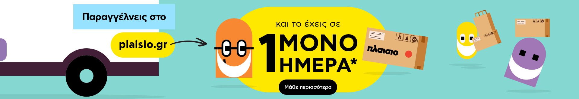 Παραγγέλνεις online στο plaisio.gr και παραλαμβάνεις στην πόρτα σου, ανέπαφα σε μια ΜΟΝΟ μέρα*