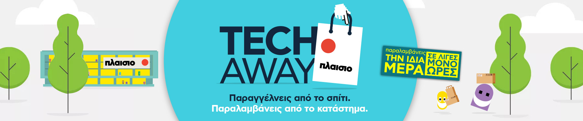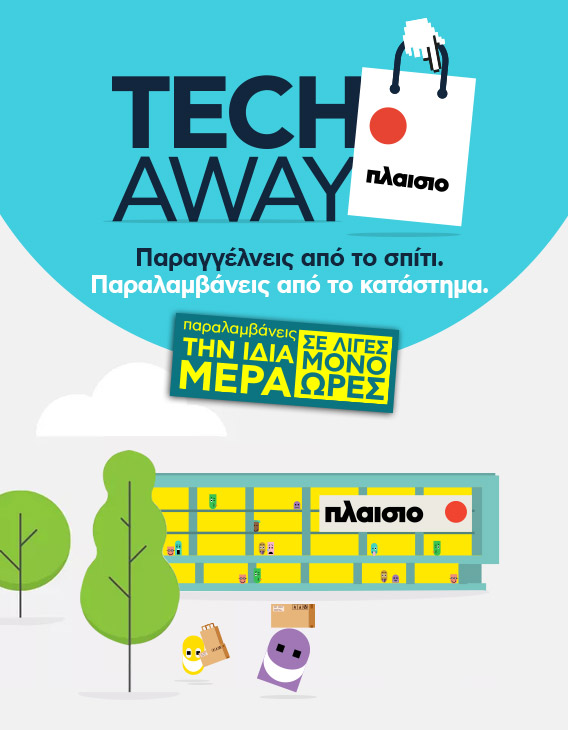 Είδες κάτι το πρωί στο plaisio.gr και το θες στα χέρια σου άμεσα; Τότε TECH AWAY! Παραγγέλνεις από το σπίτι. Παραλαμβάνεις από το κατάστημα την ίδια μέρα, σε λίγες μόνο ώρες, χωρίς να περιμένεις στην ουρά του ταμείου!