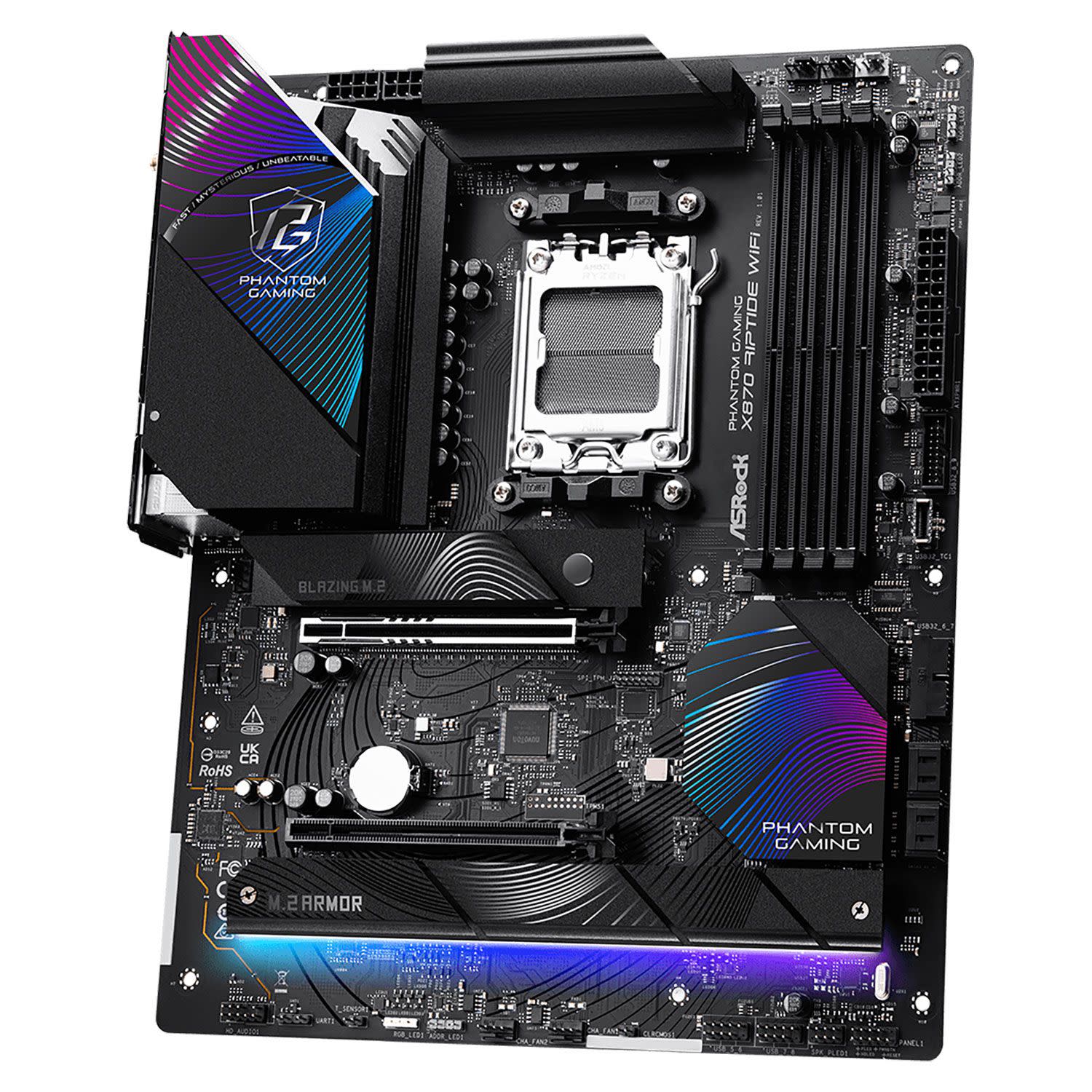 Η μητρική κάρτα ASRock PHANTOM GAMING X870 Riptide WiFi βασίζεται στην πλέον τεχνολογικά προηγμένη πλατφόρμα της AMD καθώς διαθέτει υποδοχή AM5 (δέχεται τους τελευταίας γενιάς επεξεργαστές AMD Ryzen™ 9000, 8000 και 7000-series) και ολοκληρώνεται γύρω από το κεντρικό chipset AMD X870E.