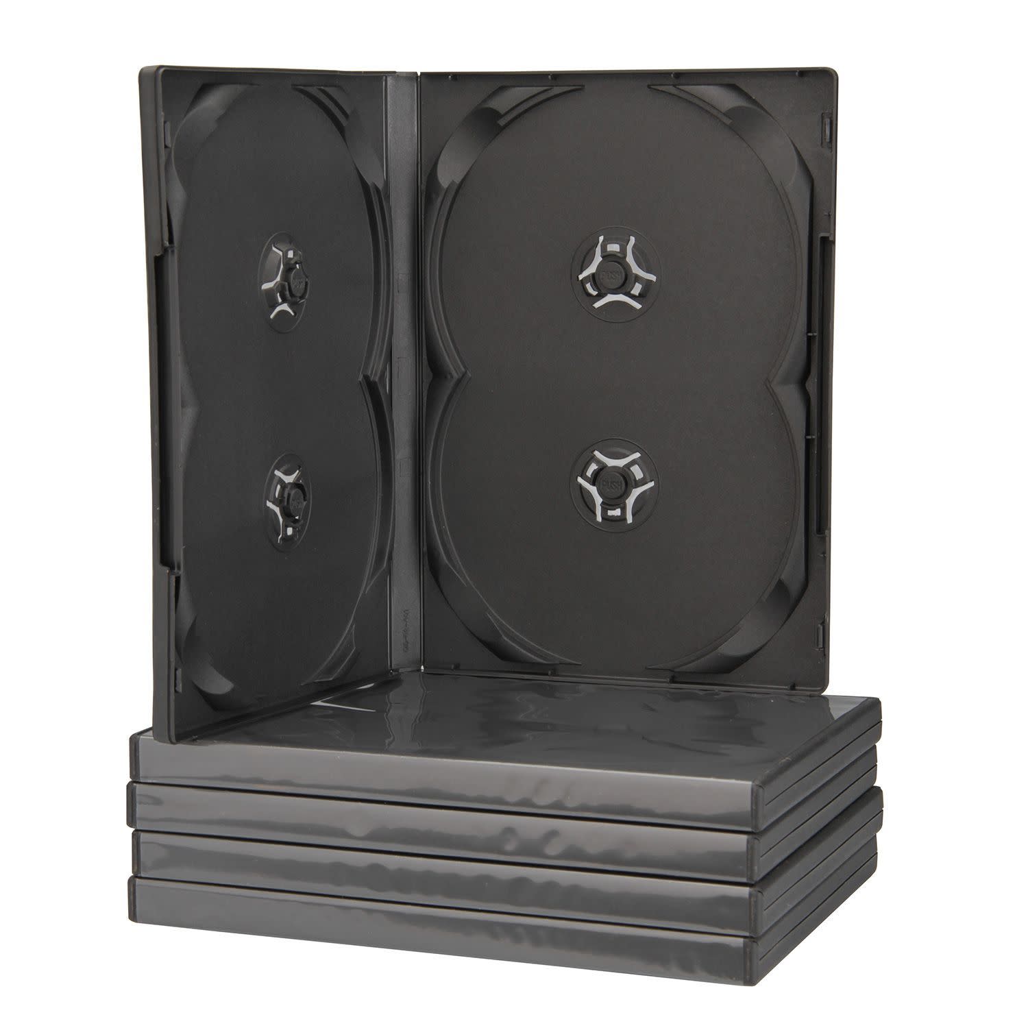 Ανθεκτικές πλαστικές θήκες για την προστασία των cd και dvd σας. Τα προστατεύουν από τις φθορές, το σπάσιμο και τη σκόνη. Κάθε θήκη δέχεται 4 CD ή DVD. Πρακτική συσκευασία 5 τεμαχίων μαύρου χρώματος.