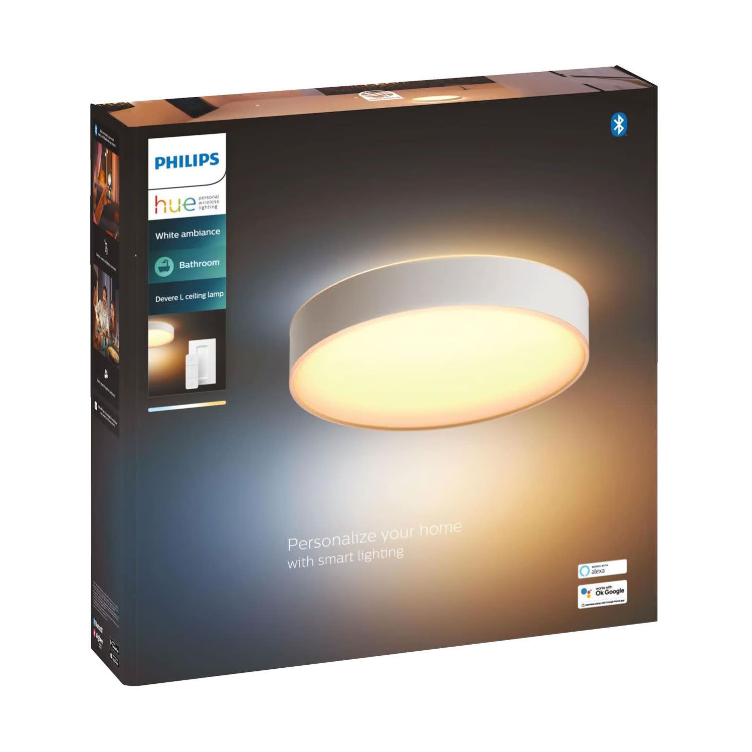 Απόλαυσε χιλιάδες αποχρώσεις θερμού έως ψυχρού φωτός με το μεγάλο φωτιστικό οροφής Philips Hue White ambiance Devere σε λευκό χρώμα και ζήσε την μαγεία του έξυπνου φωτισμού Philips Hue.