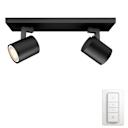 Φωτιστικό με δύο σποτ Philips Hue White ambiance Runner σε μαύρο χρώμα. Τα σποτ είναι ρυθμιζόμενα και μπορείς να φωτίσεις οποιαδήποτε γωνία του δωματίου με θερμό έως ψυχρό φως.