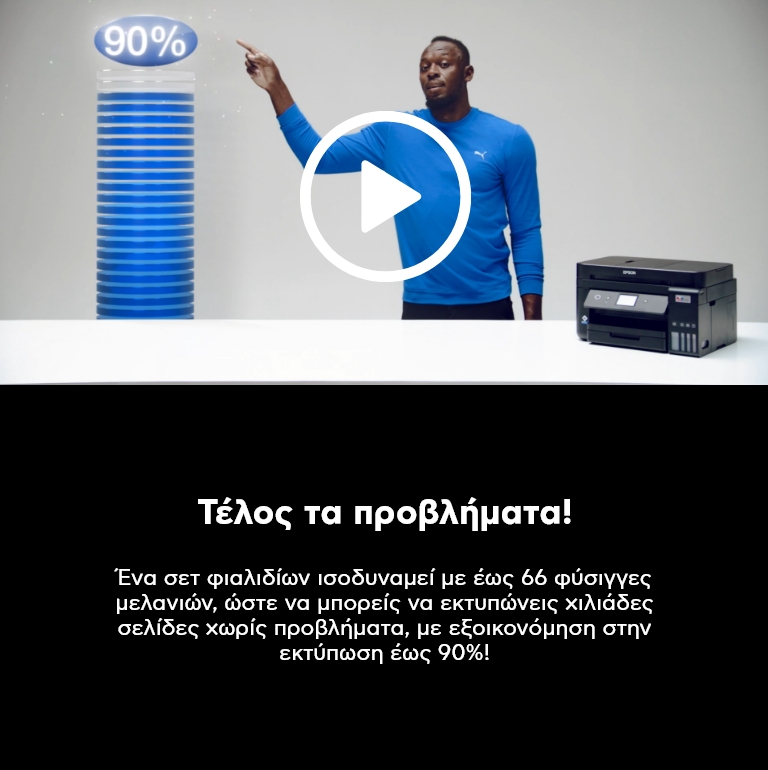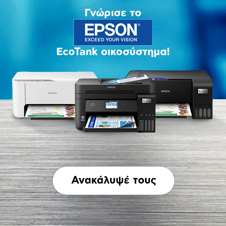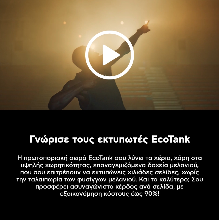 Βάσει των συγκριτικών δοκιμών απόδοσης μεταξύ των μοντέλων Epson L3150/L4160, HP Smart Tank Wireless 515 και Canon G3411/G6040 Δοκιμές παραγωγικότητας αρχείων μίας σελίδας, Keypoint Intelligence – Buyers Lab (BLI), Φεβρουάριος 2020. Ο ταχύτερος χρόνος εκτύπωσης μίας σελίδας δοκιμάστηκε σε ανταγωνιστικά συστήματα με δοχείο μελανιού inkjet A4 OEM 3 σε 1 με Wi-Fi. Για τα αναλυτικά αποτελέσματα και τα πλήρη στοιχεία των συνθηκών δοκιμής, διαβάστε τις αναφορές του Buyer Lab που θα βρείτε εδώ: Buyers lab report - Epson L3150.pdf, Buyers lab report - Epson L4160.pdf. Η ονομασία Epson είναι σήμα κατατεθέν. Το σύνθημα EXCEED YOUR VISION και τα λογότυπα είναι σήματα κατατεθέντα ή εμπορικά σήματα της Seiko Epson Corporation. Όλα τα υπόλοιπα εμπορικά σήματα αποτελούν ιδιοκτησία των αντίστοιχων κατόχων τους και χρησιμοποιούνται μόνο για λόγους ταυτοποίησης.