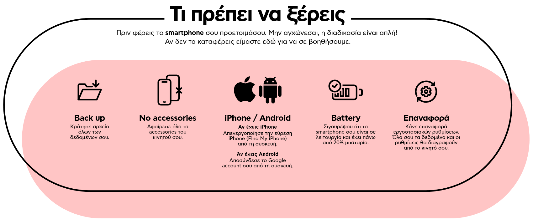 Πριν φέρεις το smartphone σου προετοιμάσου. Μην αγχώνεσαι, η διαδικασία είναι απλή! Αν δεν τα καταφέρεις είμαστε εδώ για να σε βοηθήσουμε.