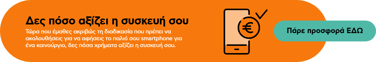 - Πριν παραδώσεις το παλιό σου smartphone θα πρέπει να έχεις κάνει backup σε κάποια άλλη συσκευή σου και να έχεις κάνει επαναφορά δεδομένων και ρυθμίσεων. Ωστόσο, όλες οι συσκευές περνούν από μια συγκεκριμένη διαδικασία διαλογής μετά την παραλαβή. Στην περίπτωση όπου δεν έχει γίνει επαναφορά, το εξειδικευμένο μας προσωπικό πραγματοποιεί μια αυτοματοποιημένη διαδικασία επαναφοράς για να διασφαλίσει την προστασία και την οριστική διαγραφή των προσωπικών σου δεδομένων.