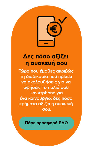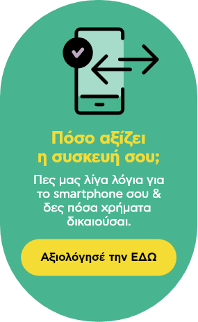- Ναι, η συσκευή σου θα πρέπει να είναι λειτουργική και ενεργή, προκειμένου να λάβεις την αξία που της αντιστοιχεί με βάση την κατάστασή της. Εάν το smartphone σου δεν είναι λειτουργικό μπορείς και πάλι να μας το παραδώσεις, χωρίς να λάβεις χρηματικό ποσό, ώστε να το ανακυκλώσουμε υπεύθυνα.