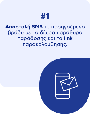 - Θα επιχειρήσουμε να παραδώσουμε την παραγγελία σου την επόμενη εργάσιμη ημέρα. Αν δεν είσαι σε θέση να παραλάβεις εκ νέου παρακαλώ επικοινώνησε μαζί μας καλώντας από κινητο στο 210 2895000 ή σταθερό στο 800 11 12345.