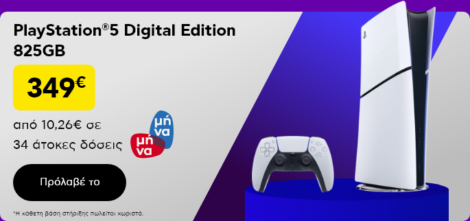 Τo "Μήνα-Μήνα" παρέχεται με άτοκη χρηματοδότηση για αγορές σε Gaming Κονσόλες, έως 31/12/2025 ή μέχρι εξαντλήσεως των αποθεμάτων. Περισσότερες λεπτομέρειες στο www.plaisio.gr/mina-mina
