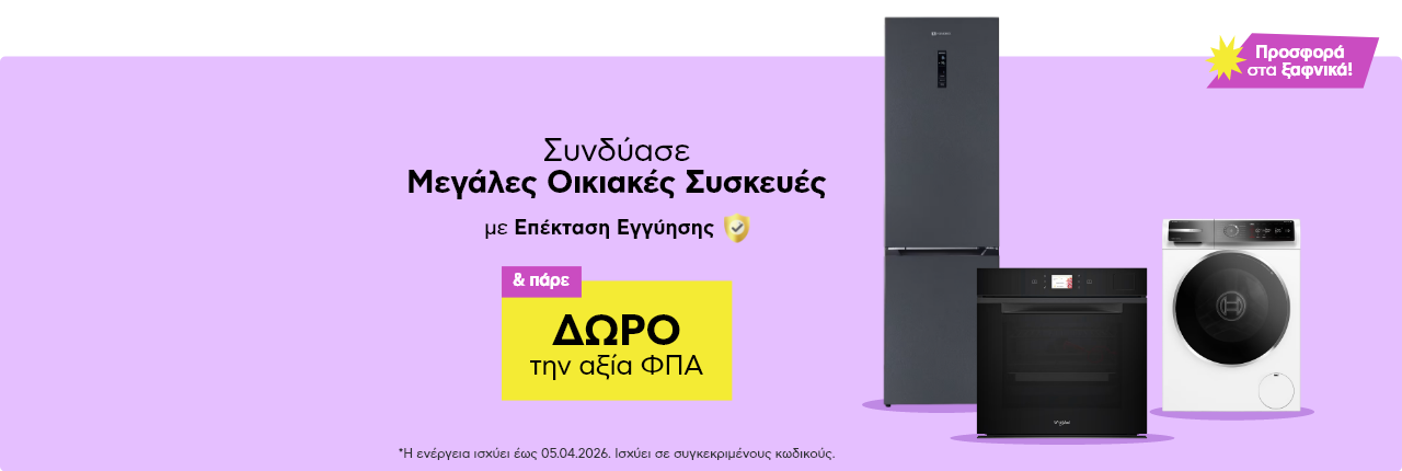 Ανακάλυψε μεγάλες οικιακές συσκευές που συνδυάζουν δύναμη, απόδοση και design. Βρες ψυγεία, ψυγειοκαταψύκτες, κουζίνες, φούρνους και απορροφητήρες που κάνουν την συντήρηση και προετοιμασία του φαγητού παιχνίδι, όπως και πλυντήρια ρούχων ή πιάτων, αλλά και στεγνωτήρια με κορυφαία ενεργειακή απόδοση για επιπλέον οικονομία.