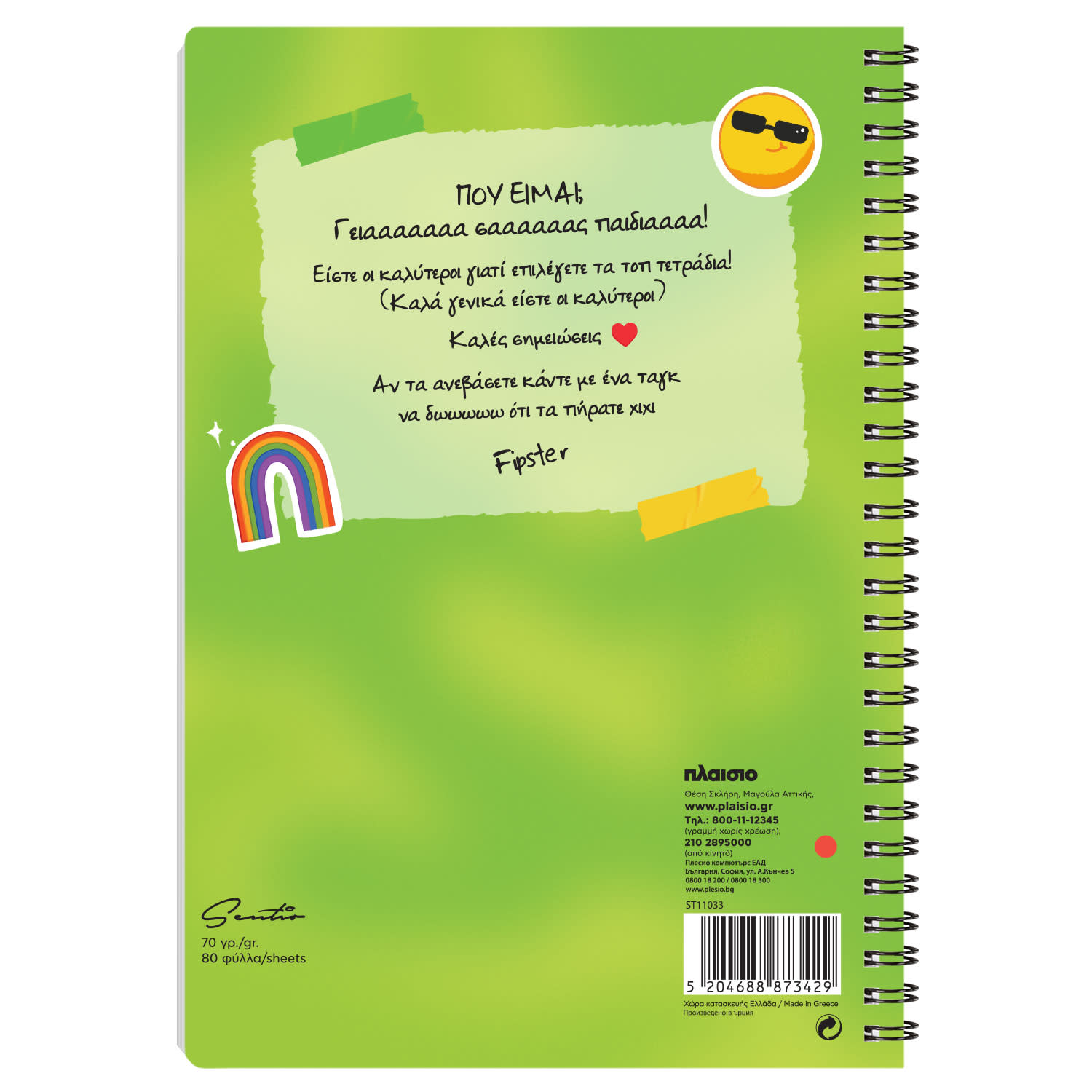 Sentio Τετράδιο Σπιράλ 17x25 Fipster Τσατ 80 Φύλλα