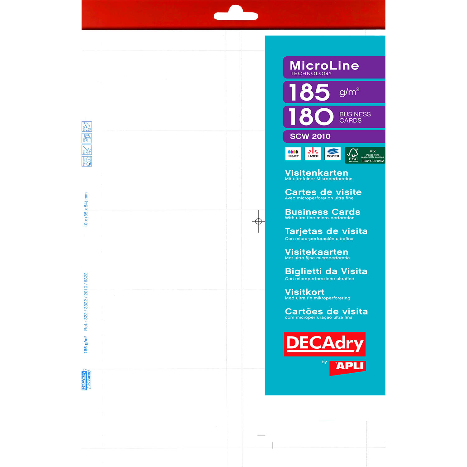 Επαγγελματικές κάρτες από την Decray, σε συσκευασία που περιέχει 180 τεμάχια και με τεχνολογία εκτύπωσης Inkjet, ιδανική για να ξεχωρίζεις τις κάρτες σου με ευκολία και άνεση.
