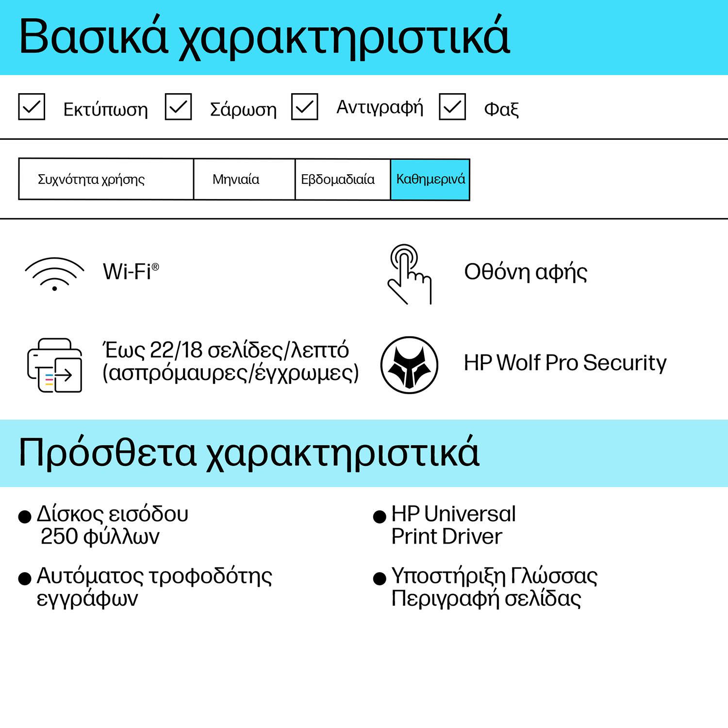 Είναι κατασκευασμένο για ισχυρή παραγωγικότητα, με γρήγορες ταχύτητες (έως και 22 σελίδες/λεπτό) και από αξιόπιστο υλικό, προσφέροντας αβίαστα καθημερινή χρήση.
