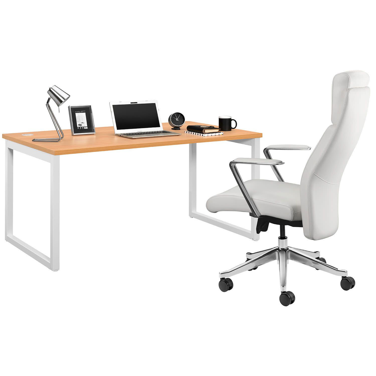 Η επιφάνεια του γραφείου είναι από μελαμίνη πάχους 25mm, ενώ τα τετράγωνα λευκά πόδια του είναι κατασκευασμένα από μέταλλο.