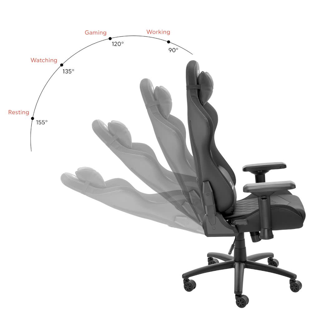 Έχει κλίση καθίσματος έως 177°, μηχανισμό τύπου bucket και αποσπώμενο μαξιλαράκι μέσης και κεφαλής, για να κάθεσαι αναπαυτικά και να οδηγείσαι στη νίκη… κάθε φορά.