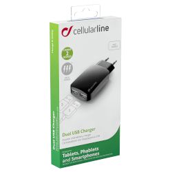 Φορτιστής Σπιτιού 2 Θέσεων Cellular Line Μαύρο 3.1A
