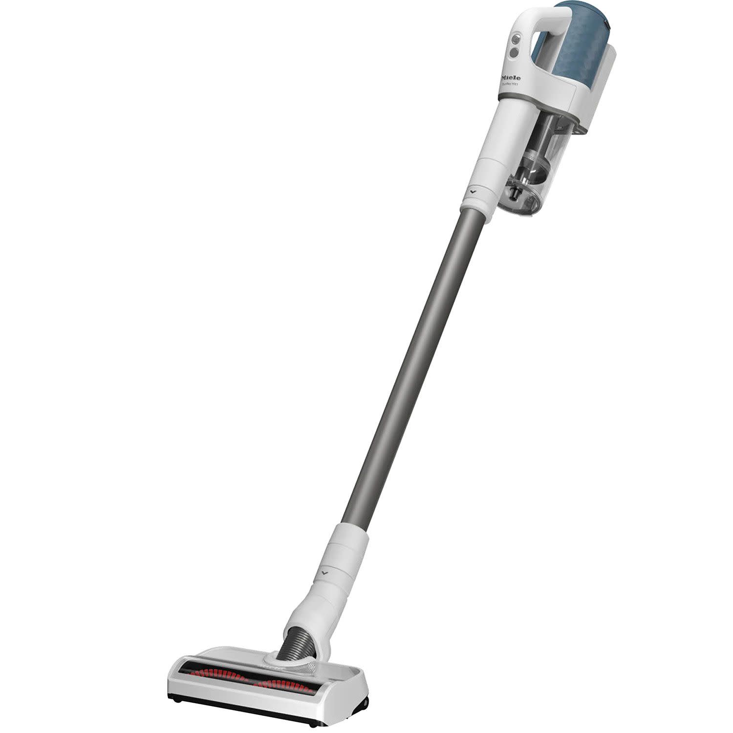 Επαναφορτιζόμενη σκούπα stick της Miele σε μπλε χρώμα, με τεχνολογία Vortex που συγκρατεί αποτελεσματικά τη σκόνη και 2 βαθμίδες, για να προσαρμόζεις την ένταση ανάλογα.