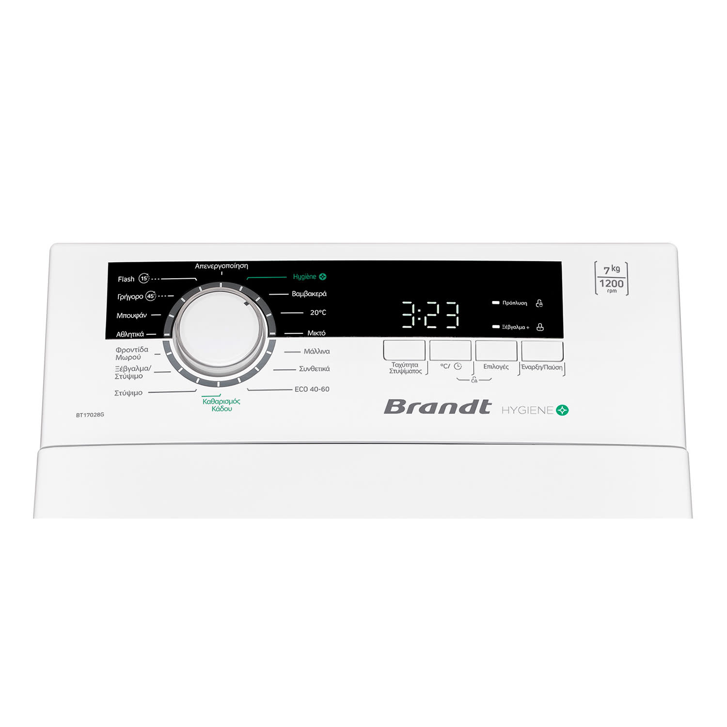 Brandt πλυντήριο ρούχων 7kg, με πρόγραμμα Hygiene για εξάλειψη του 99,9% των βακτηρίων και λειτουργία αυτοκαθαρισμού του κάδου για την απόλυτη υγιεινή των ρούχων σου!