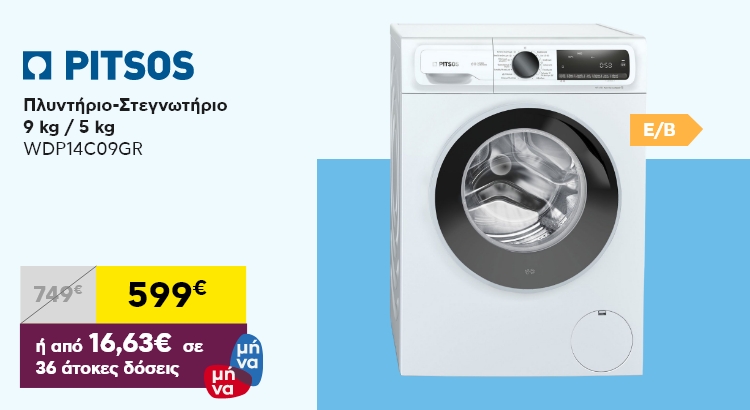 Χωρητικότητα: 9 kg, Ενεργειακή κλάση: C, Τεχνολογία Στεγνώματος: Αντλία Θερμότητας