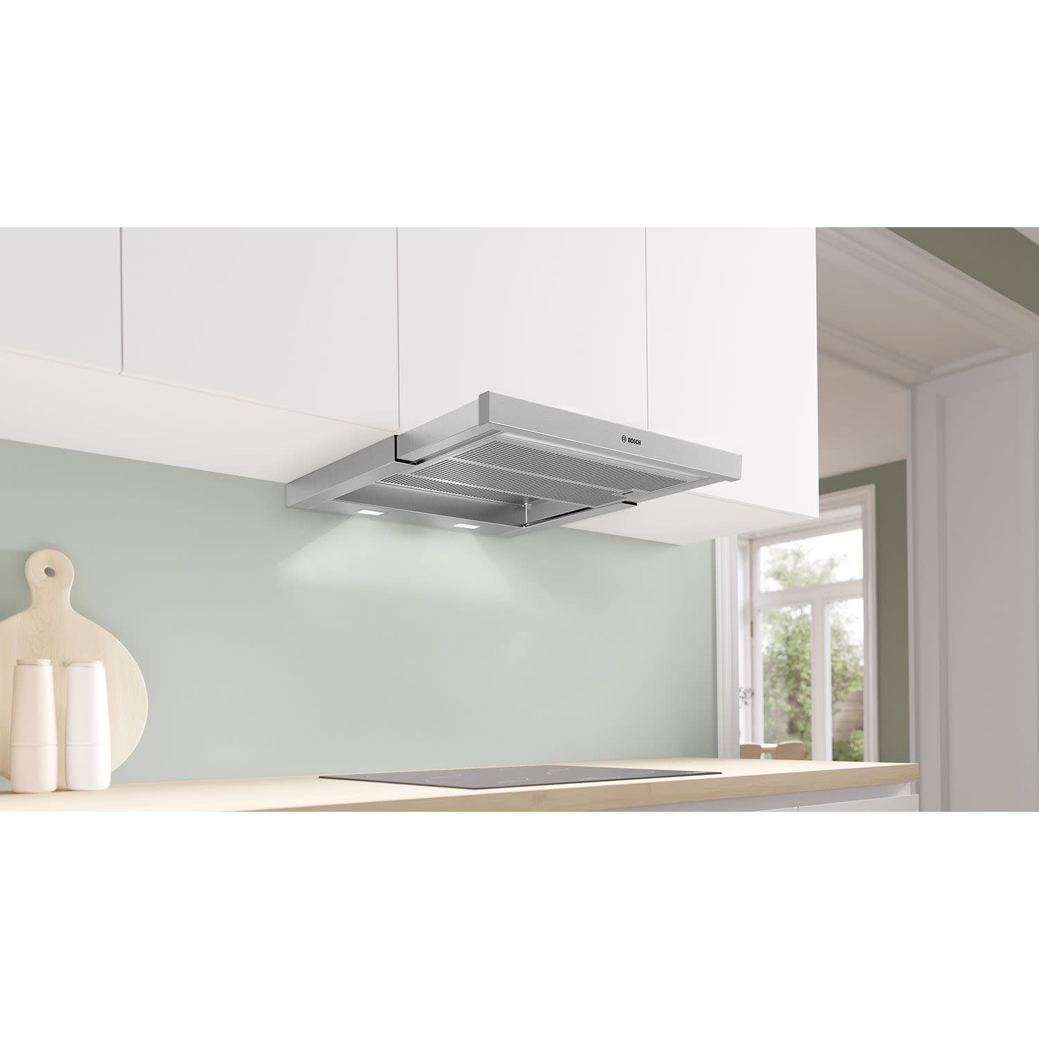 Συρόμενος απορροφητήρας Bosch πλάτους 60cm, που στέκεται «αόρατος φύλακας» στο πλευρό της κουζίνας σου. Με μέγιστη απορροφητικότητα 392m³/h, ενεργειακή κλάση Α και μεταλλικά φίλτρα!