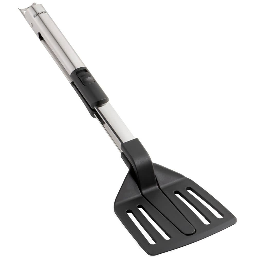 Αυτό το 2 σε 1 εργαλείο Leifheit είναι ιδανικό για τηγάνισμα και για ψήσιμο, αφού μετατρέπεται εύκολα από λαβίδα σε σπάτουλα και το αντίστροφο. Διαθέτει ελαστικές άκρες με μεγάλη αντοχή στη θερμότητα.