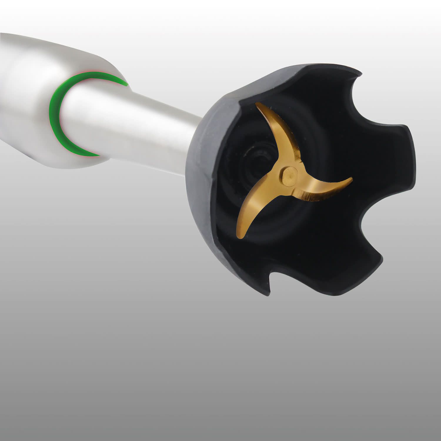 Διαθέτει τεχνολογία Vario Blade με 3 λεπίδες με επικάλυψη τιτανίου, κινούμενες πάνω-κάτω, ενώ ταυτόχρονα η ράβδος κινείται στην αντίθετη κατεύθυνση για πιο αποτελεσματική ανάμειξη. Συνεπώς, οι λεπίδες του υπόσχονται να ψιλοκόψουν και να πολτοποιήσουν τα φρούτα για τα smoothies σου ή τα λαχανικά για τις βελουτέ σούπες σου, χαρίζοντάς τους μοναδική ομοιόμορφη υφή, χωρίς κομμάτια υλικών. Αυτό το ραβδομπλέντερ θα γίνει το δεξί σου χέρι, όταν μαγειρεύεις!