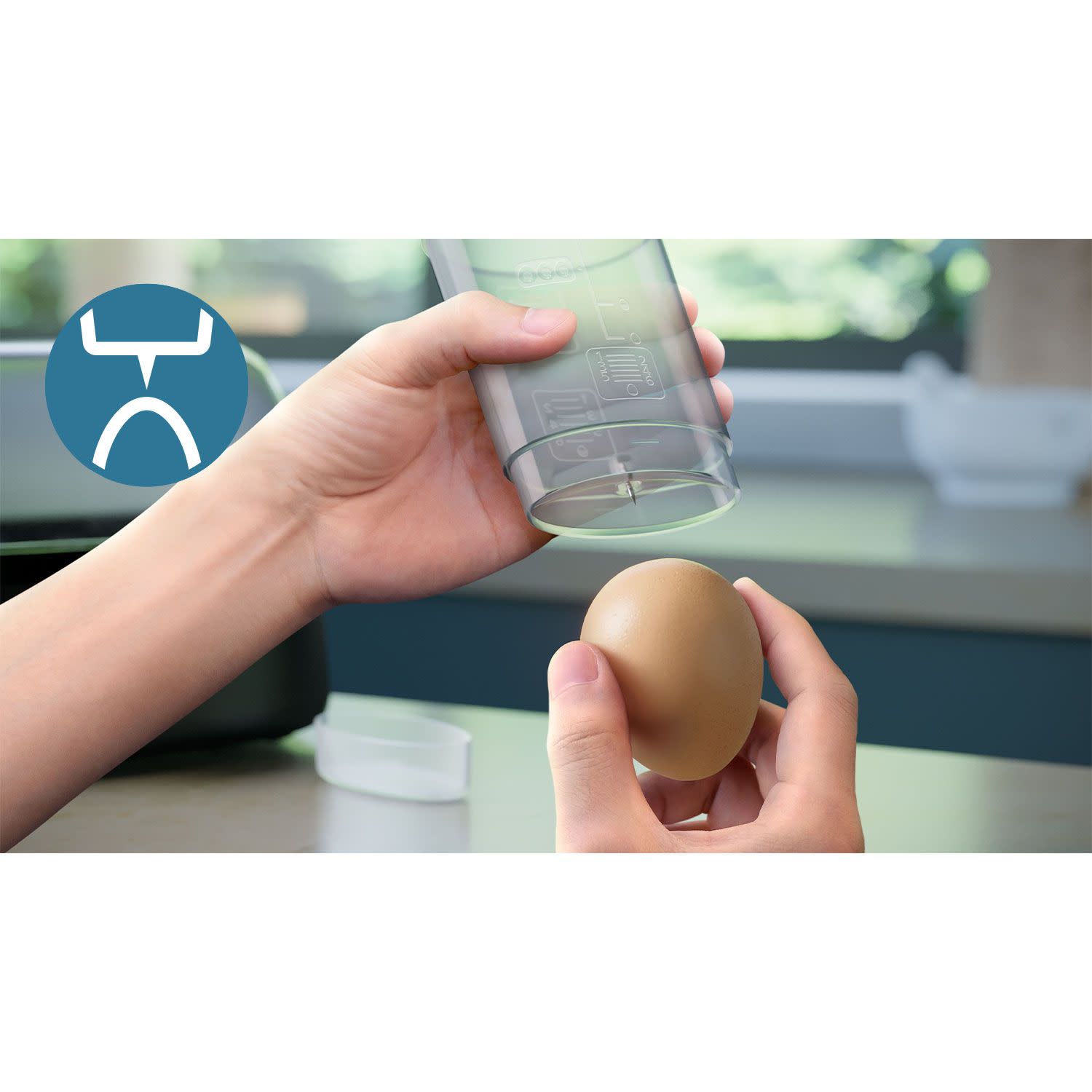 Σχεδιασμένος για να αποτρέπει την ακαταστασία και τα «χαμένα» αξεσουάρ, ο βραστήρας αυγών είναι μικρός και συμπαγής και μπορεί να αποθηκεύσει όλα τα εξαρτήματα (δοσομετρητής, δίσκος για αυγά ποσέ, εργαλείο για το τρύπημα των αυγών και δοχείο) στο εσωτερικό του.