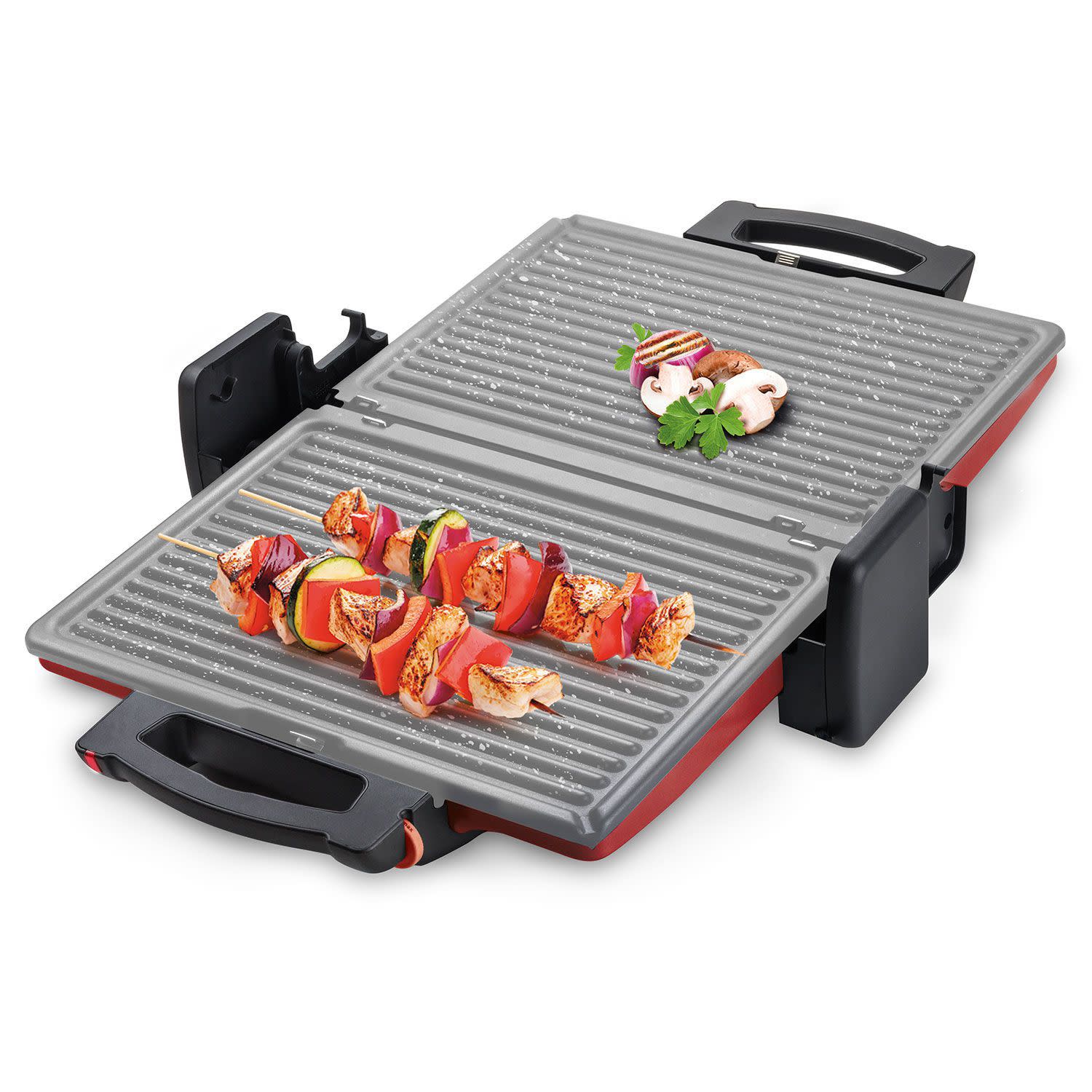 Η πλάκα ανοίγει 180⁰ για να φιλοξενεί με άνεση το φαγητό σου. Ακόμα και τα γεμιστά μπιφτέκια, αλλά και τα πληθωρικά σου σάντουιτς βγαίνουν ζουμερά και καλοψημένα!