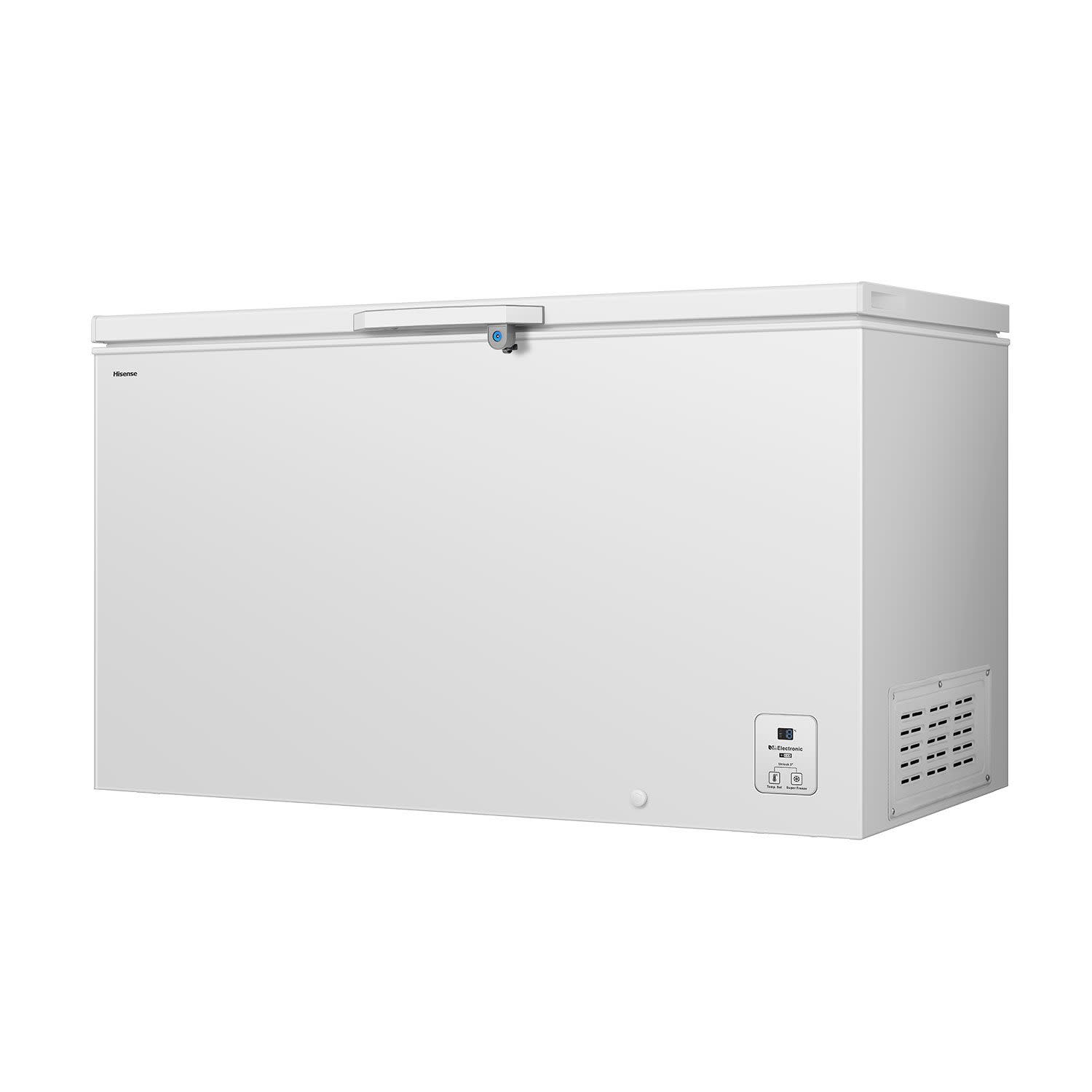 Καταψύκτης Μπαούλο Hisense καθαρής χωρητικότητας 440Lt, με ειδοποίηση μεταβολής θερμοκρασίας, κλειδαριά πόρτας και δύο βολικά καλάθια αποθήκευσης και οργάνωσης.