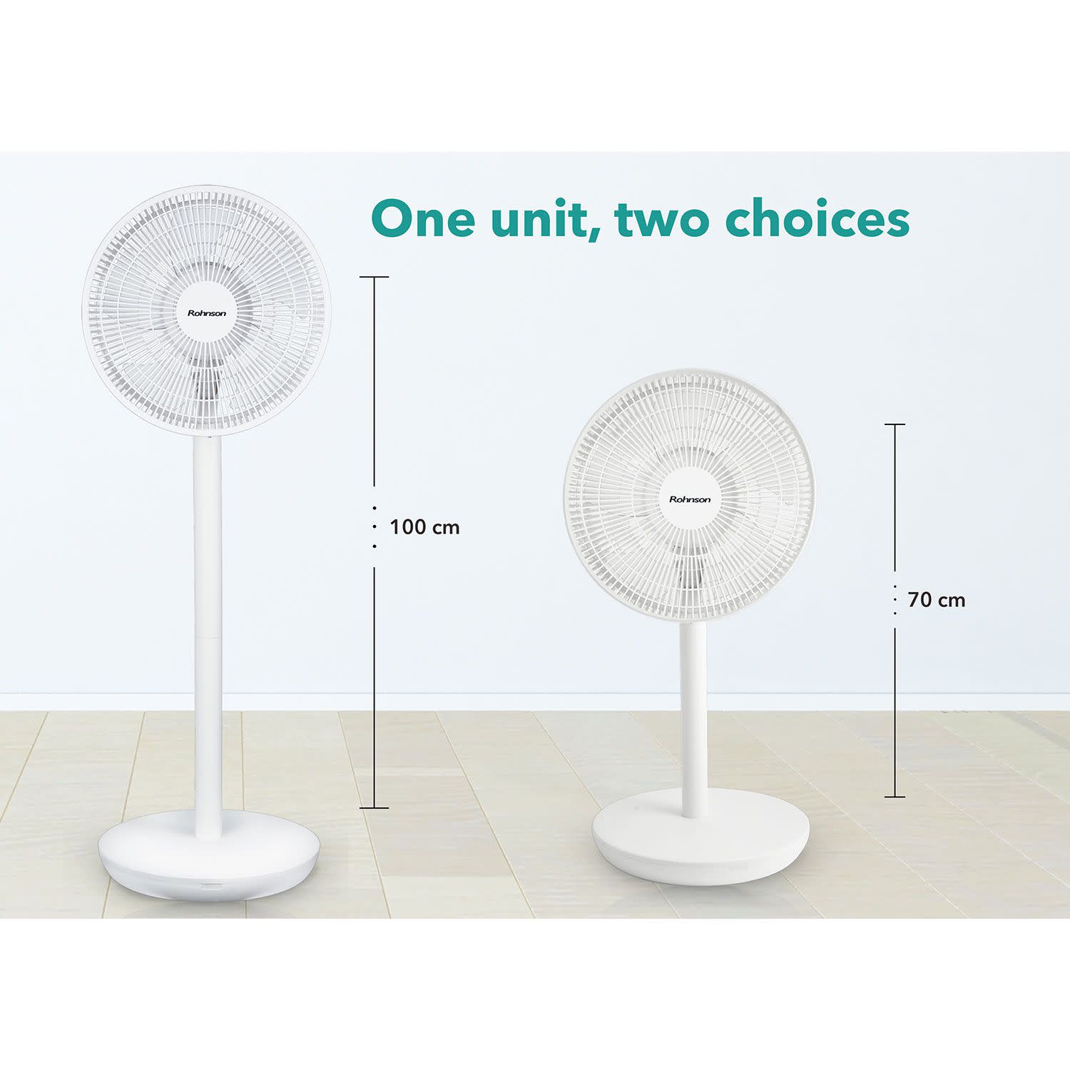 Ο συνδυασμός ποιότητας πλαστικών και διάφανων πτερυγίων, έχουν ως αποτέλεσμα το μοντέρνο design αυτού του ανεμιστήρα. Σχεδιάστηκε με τέτοιο τρόπο, ώστε με το πάτημα ενός μόνο κουμπιού, να μετατρέπεται στο κατάλληλο μέγεθος για τον κατάλληλο χώρο.