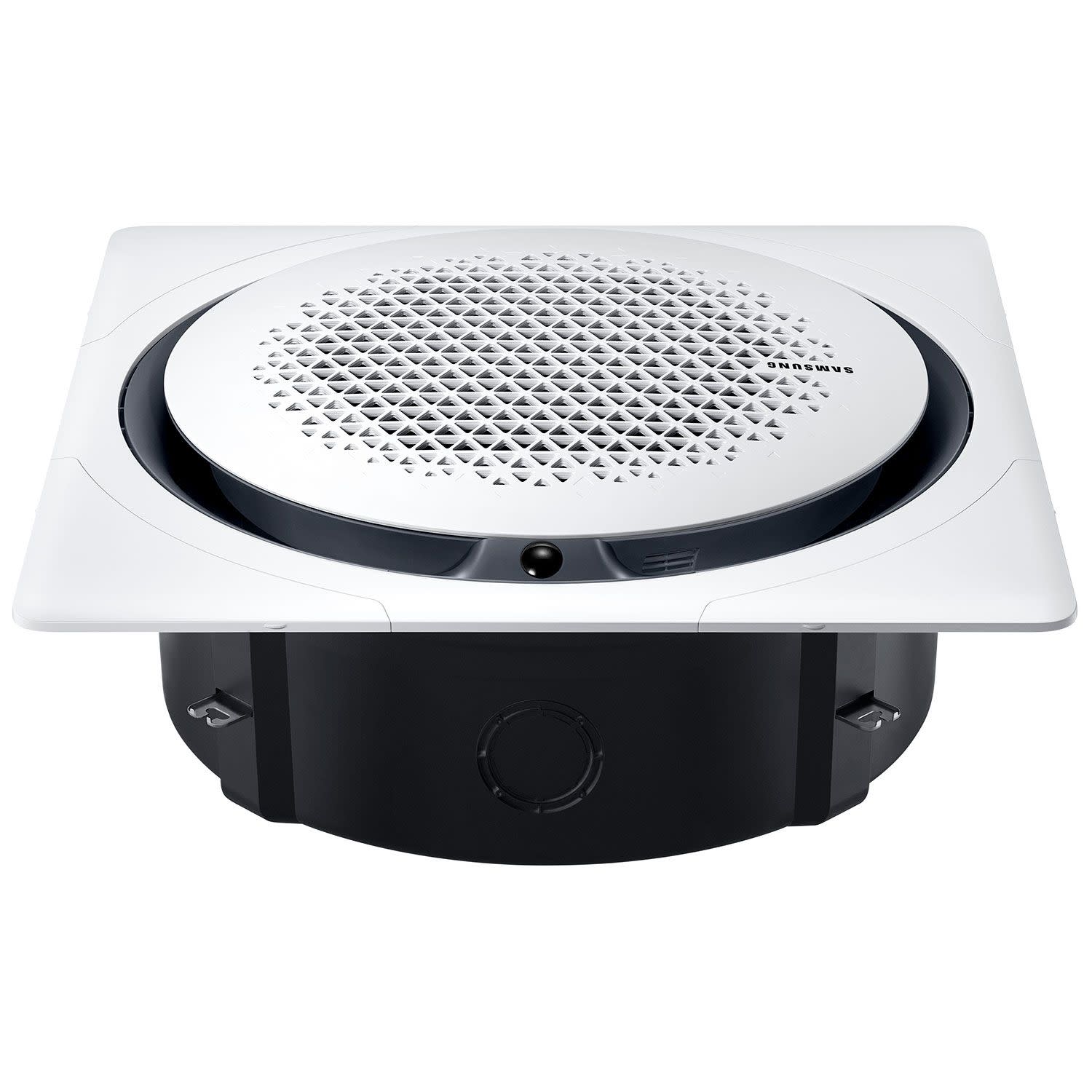 Κασέτα παροχής αέρα 360ο της Samsung για αντλία θερμότητας, με ενσωματωμένη αντλία αποστράγγισης υγρασίας και χωρίς περσίδες για ομαλή διάδοση του αέρα σε όλο το χώρο.