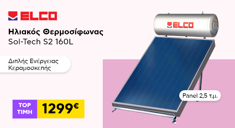 Elco Ηλιακός Θερμοσίφωνας Sol-Tech S2 130L/1.8τμ Διπλής Ενέργειας Ταράτσας