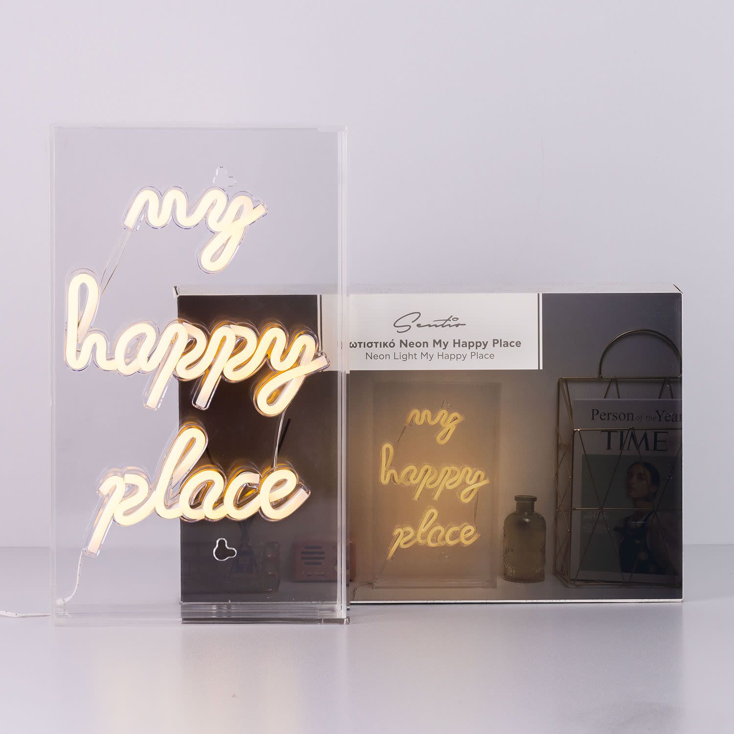 Ένα μοναδικό φωτιστικό Sentio για το δικό σου «Happy Place»! Δώσε στο χώρο σου την προσωπική σου πινελιά με αυτό το neon light box που μπορείς να το τοποθετήσεις και στον τοίχο!