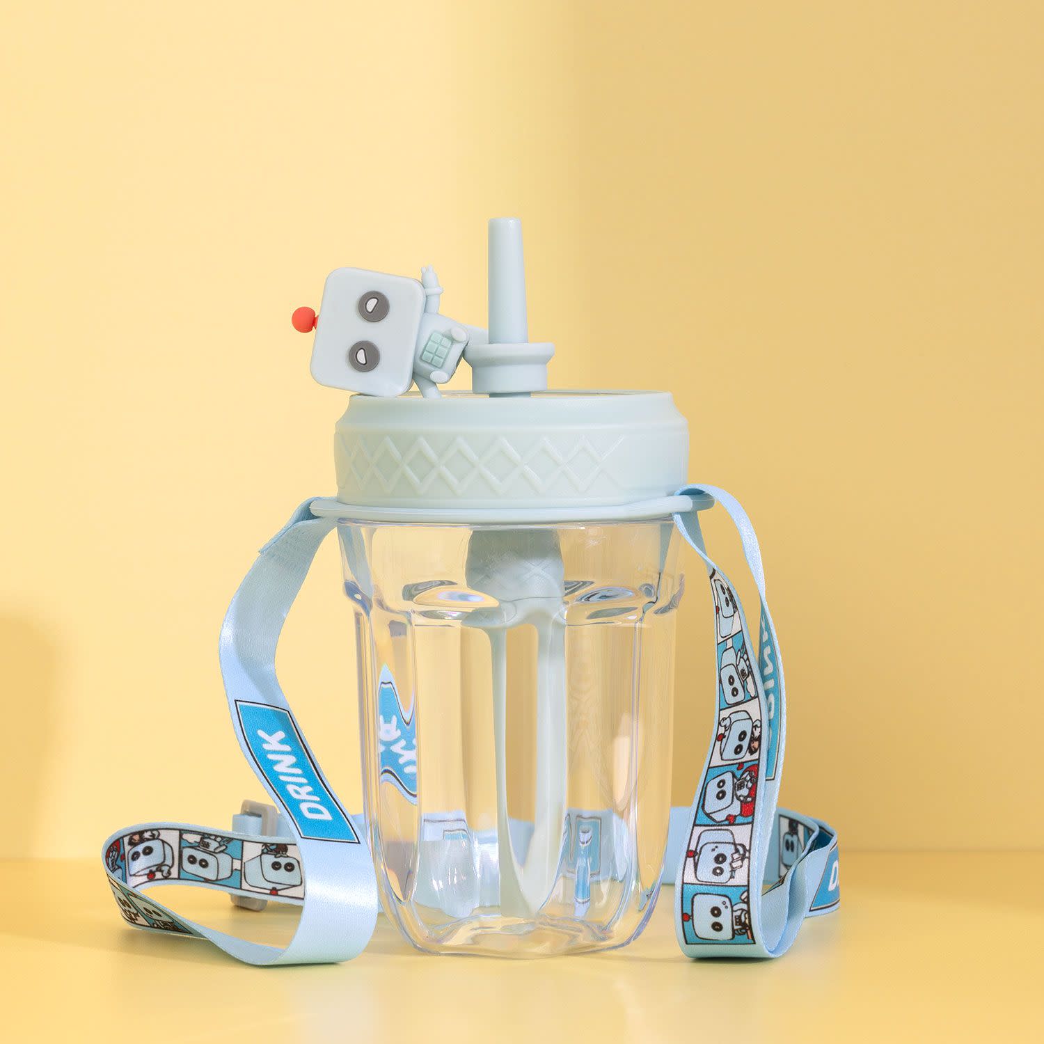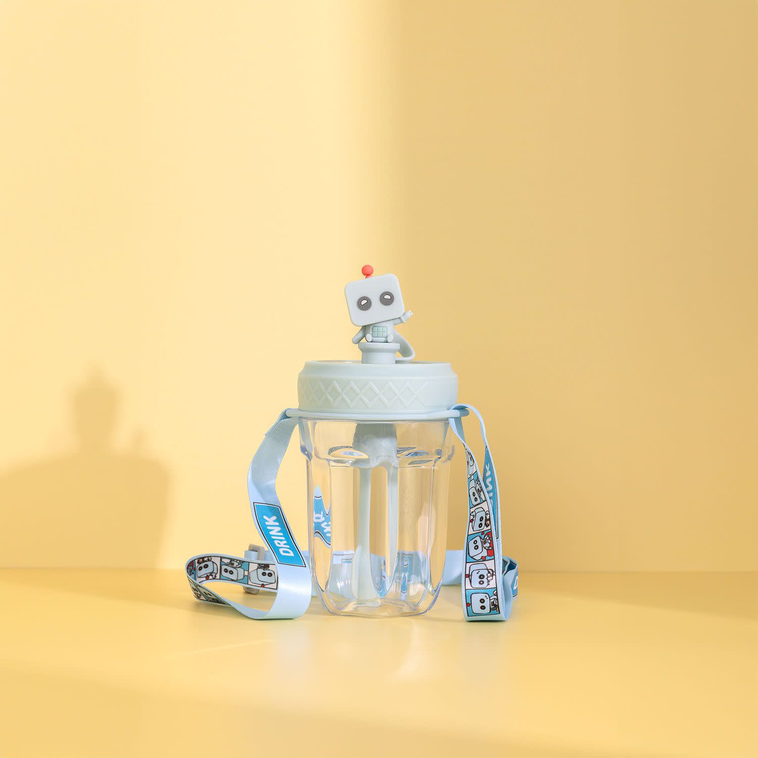 Παιδικό πλαστικό ποτήρι με καλαμάκι και σχέδιο ρομποτάκι από τη Sentio, που θα γίνει το αγαπημένο αξεσουάρ των μικρών μας φίλων, για το νερό ή τον χυμό τους. Διαθέτει και λουράκι για ακόμα πιο εύκολη