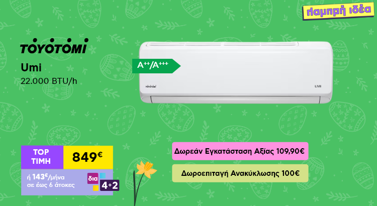 Ο υδράργυρος ανέβηκε; Μην ανησυχείς! Στο Plaisio.gr θα βρεις μεγάλη ποικιλία από air condition για κάθε χώρο, αλλά και το ιδανικό φορητό κλιματιστικό χωρίς εξωτερική μονάδα. Διάλεξε βάση BTU και τετραγωνικών και απόλαυσε δροσιά όπου κι αν βρίσκεσαι στο σπίτι, στο γραφείο ή σε εξοχική κατοικία. Μείνε… cool με λύσεις που σου ταιριάζουν!