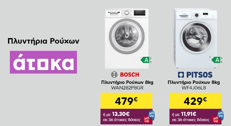 Διάλεξε ανάμεσα σε πλυντήρια bosch, πλυντήρια lg, πλυντήρια siemens ή πλυντήρια - στεγνωτήρια και απόλαυσε τα ρούχα σου πιο απαλά και καθαρά από ποτέ!