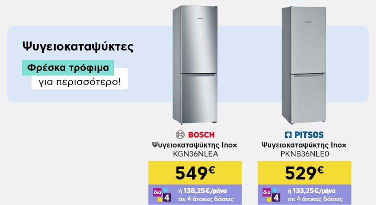Βρες τον ψυγειοκαταψύκτη στο μέγεθος και την τιμή που καλύπτει τις ανάγκες σου με τεχνολογία No Frost σε χρώμα inox, λευκό ή Ασημί, όλα στο Plaisio.gr