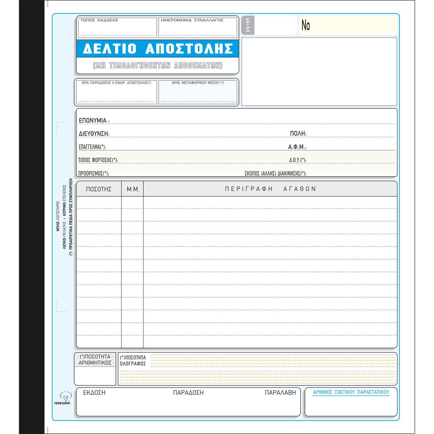 Βρες στο Πλαίσιο μπλοκ τιμολογίου, απόδειξη είσπραξης, δελτίο αποστολής και κάθε είδους λογιστικό έντυπο που θα χρειαστείς για την καθημερινή λειτουργία της επιχειρήσής σου.