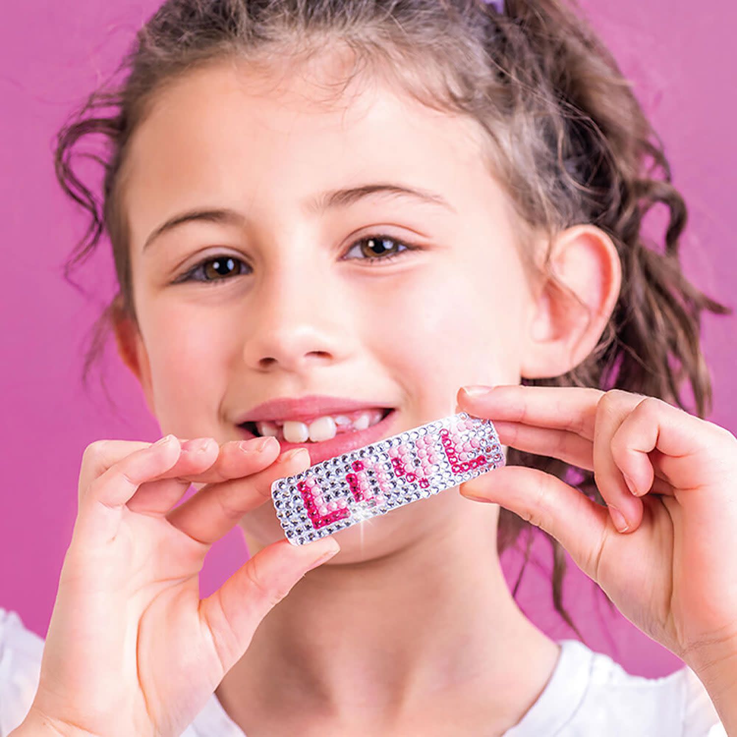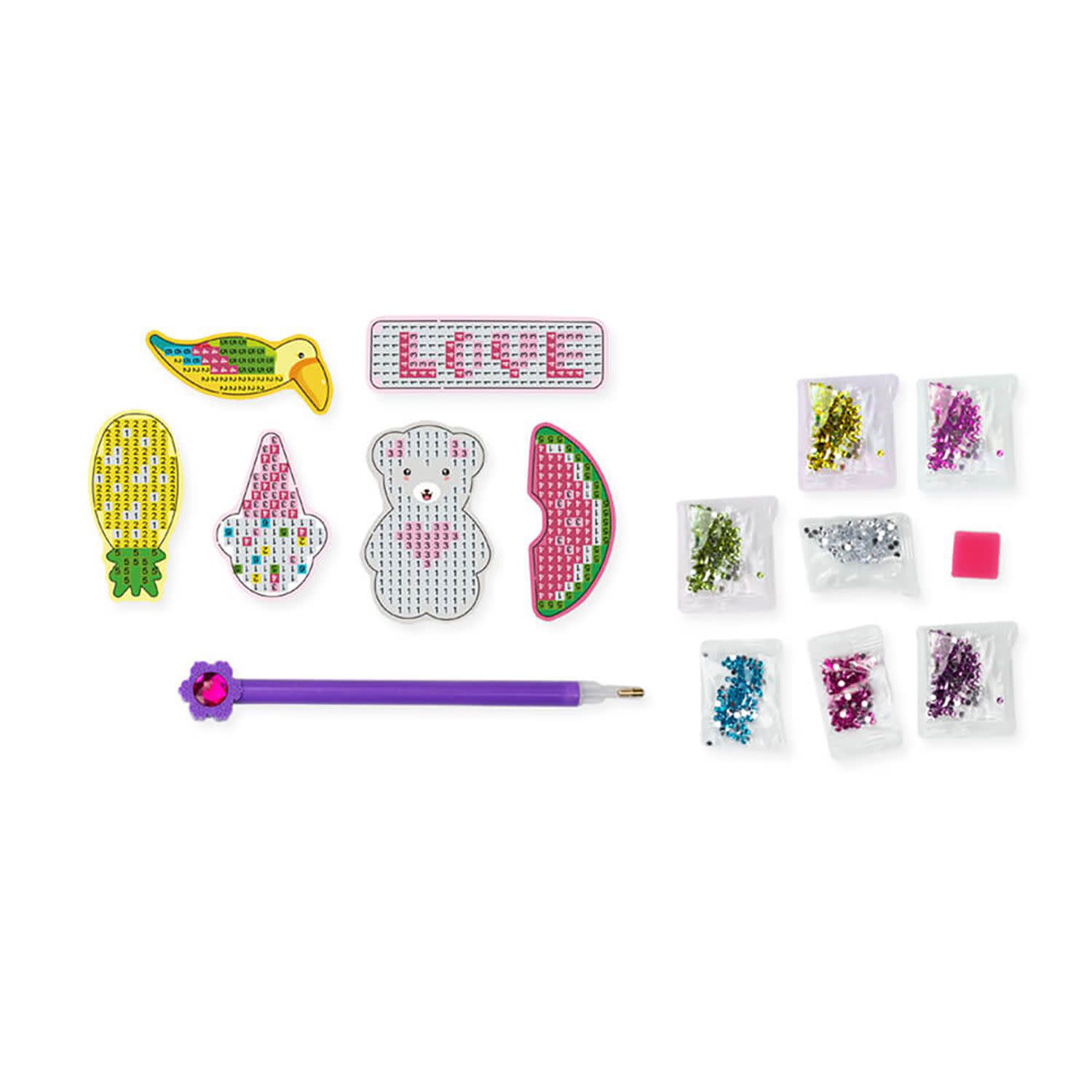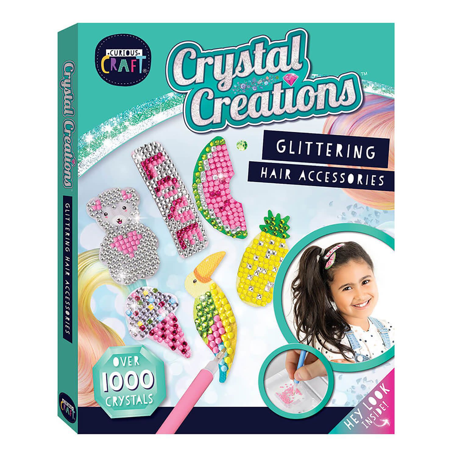 Άφησε τη δημιουργικότητά σου να ξεδιπλωθεί μέσα από αυτό το λαμπερό σετ δημιουργίας με κρυστάλλους, με θέμα «Αξεσουάρ Μαλλιών με γκλίτερ». Χρησιμοποίησε την ειδική γραφίδα και τα λαμπερά πετράδια που περιλαμβάνονται στο kit για να διακοσμήσεις βήμα-βήμα εντυπωσιακές κορδέλες και cute κλιπ μαλλιών.