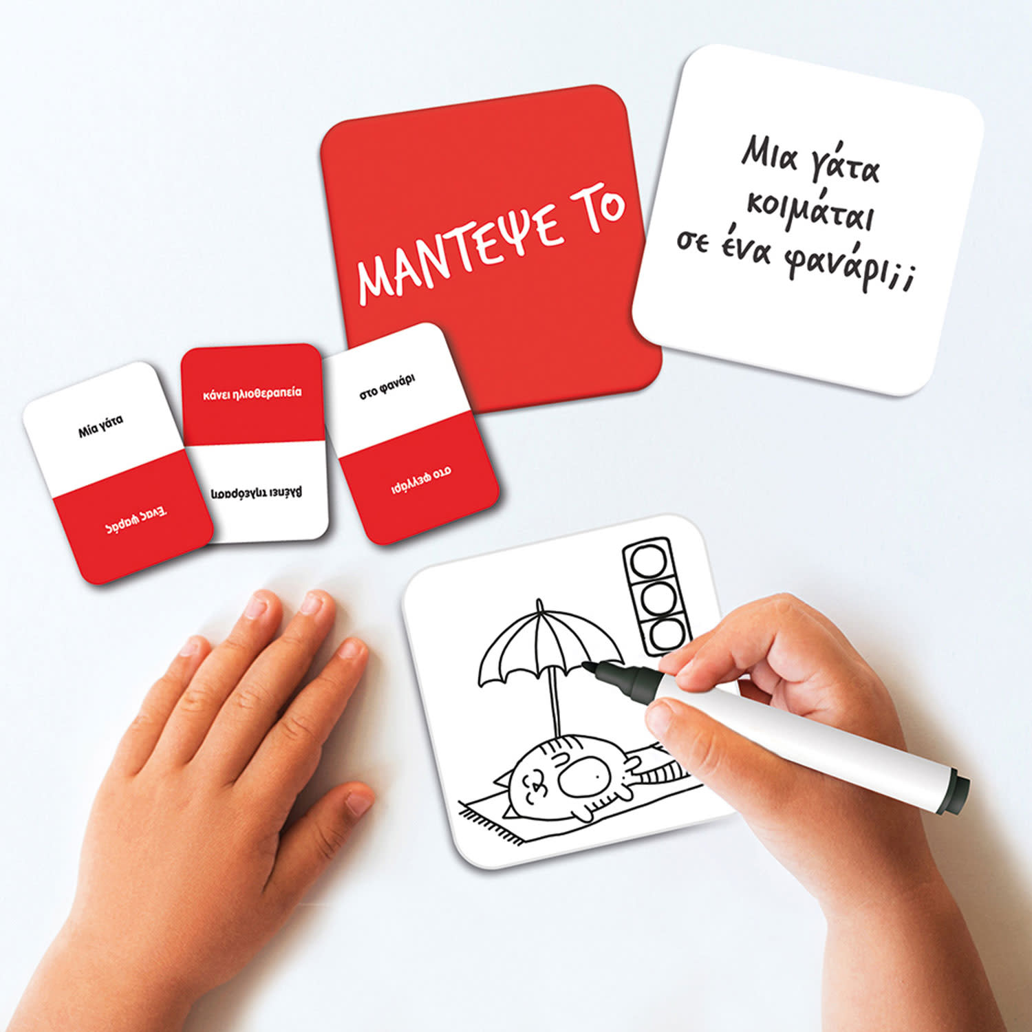 Δε ζωγραφίζεις καλά; Κανένα πρόβλημα! Όσο χειρότερες είναι οι ζωγραφιές, τόσο πιο αστείο θα είναι το παιχνίδι! Σκίτσαρε μία εικόνα από 3 διαφορετικές κατηγορίες: Ποιος; Που; Τι; και προσπάθησε να κάνεις τους συμπαίκτες σου να μαντέψουν τι ζωγράφισες. Σίγουρα θα γελάσετε μέχρι δακρύων!