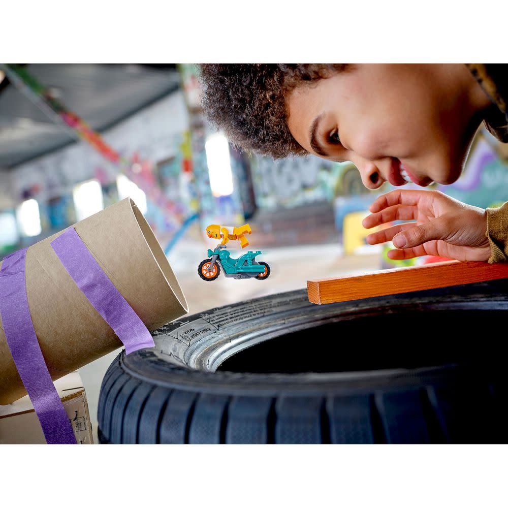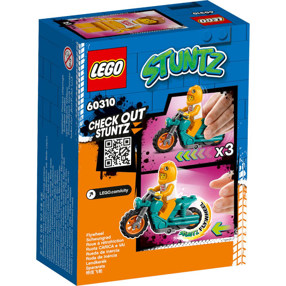 Ετοιμάσου για απίθανα ακροβατικά και περιπέτειες γεμάτες δράση με την ακροβατική μηχανή της LEGO®, Chicken Stunt Bike! Ανέβα στην κουλ μηχανή του Κλέμονς, τηλεοπτικού ήρωα, μασκότ της ομάδας LEGO® City και κασκαντέρ της! Έχεις δει κοτόπουλα να πετούν; Αυτό σίγουρα πετάει! Εξαπόλυσε την απίθανη ακροβατική μηχανή για να εκτελέσεις άλματα, εναέριους ελιγμούς και προσγειώσεις σε έναν τροχό. Απλώς απίθανο!