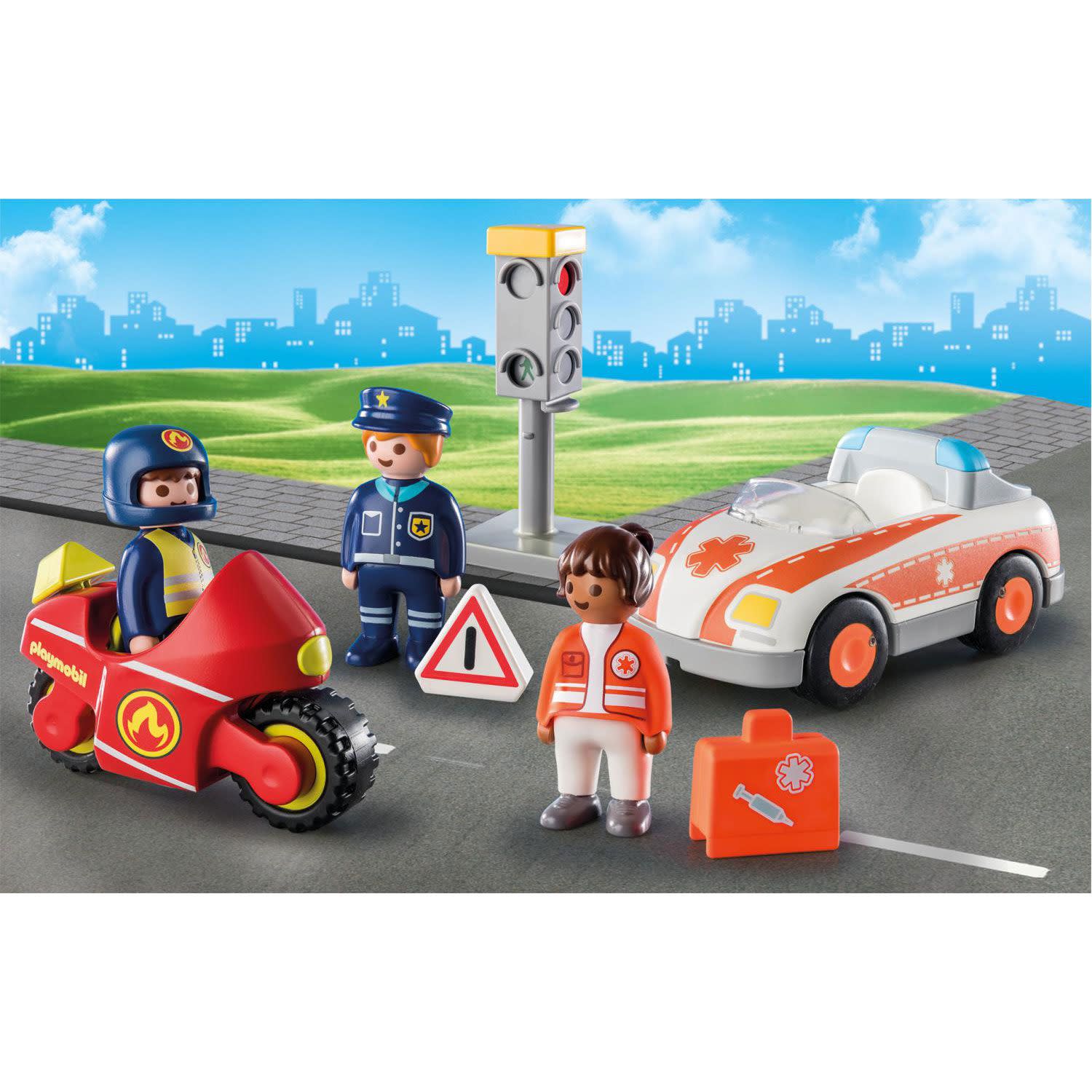 Σετ παιχνιδιού της Playmobil από τη σειρά 1-2-3. Ανακάλυψε τρεις καθημερινούς ήρωες! Τον αστυνόμο, τον πυροσβέστη και τη νοσοκόμα με ό,τι ακριβώς χρειάζονται για να φέρουν εις πέρας το έργο τους.