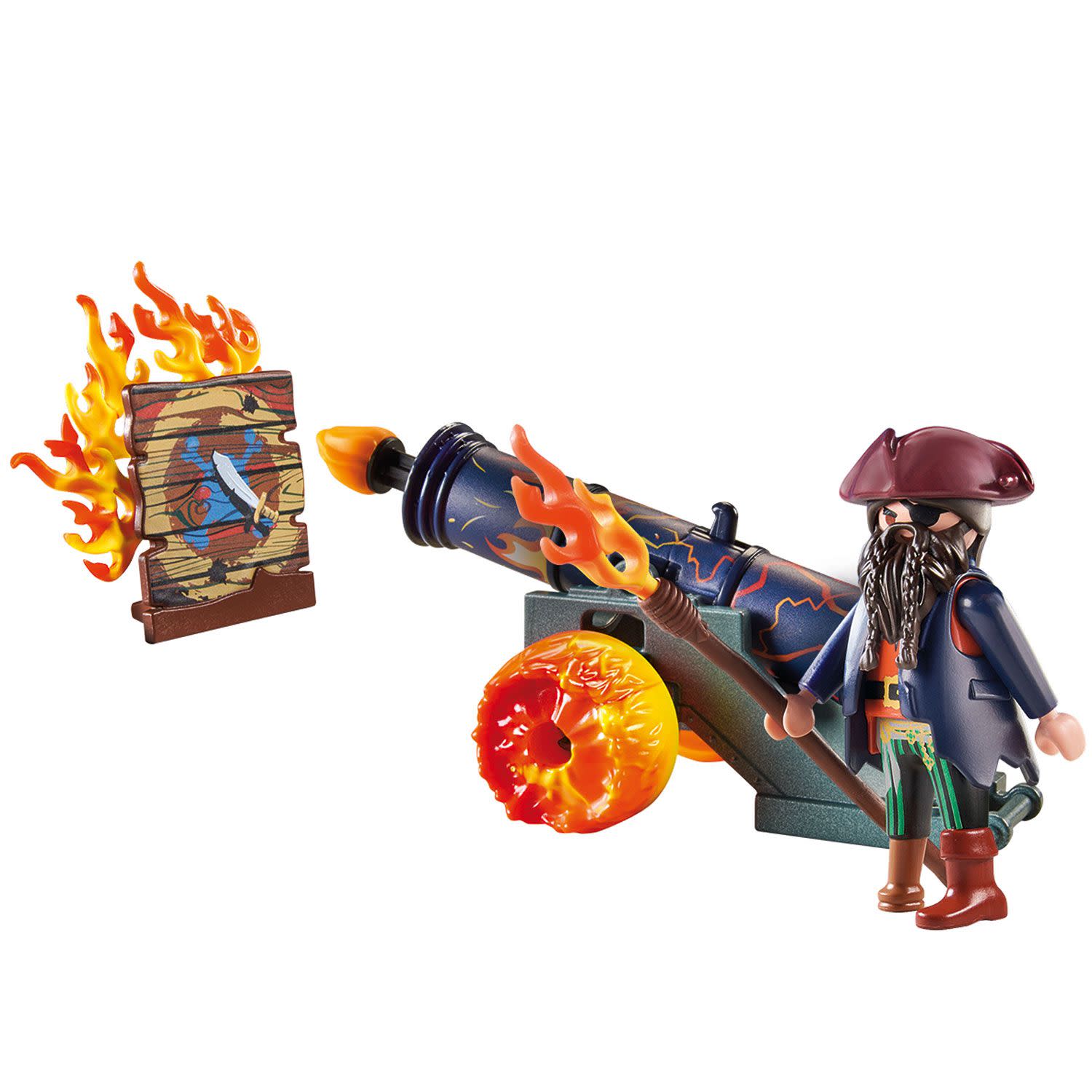 Μία πειρατική μάχη ξεκινάει! Ο πειρατής Playmobil εξασκείται στο στόχο, χρησιμοποιώντας το κανόνι με τις οβίδες της φωτιάς. Το gift set «Πειρατής με κανόνι» περιλαμβάνει έναν πειρατή, έναν στόχο, δύο οβίδες φωτιάς, μικρές φλόγες κι άλλα αξεσουάρ. Με ειδικό ταμπελάκι για ευχές πάνω στο κουτί.