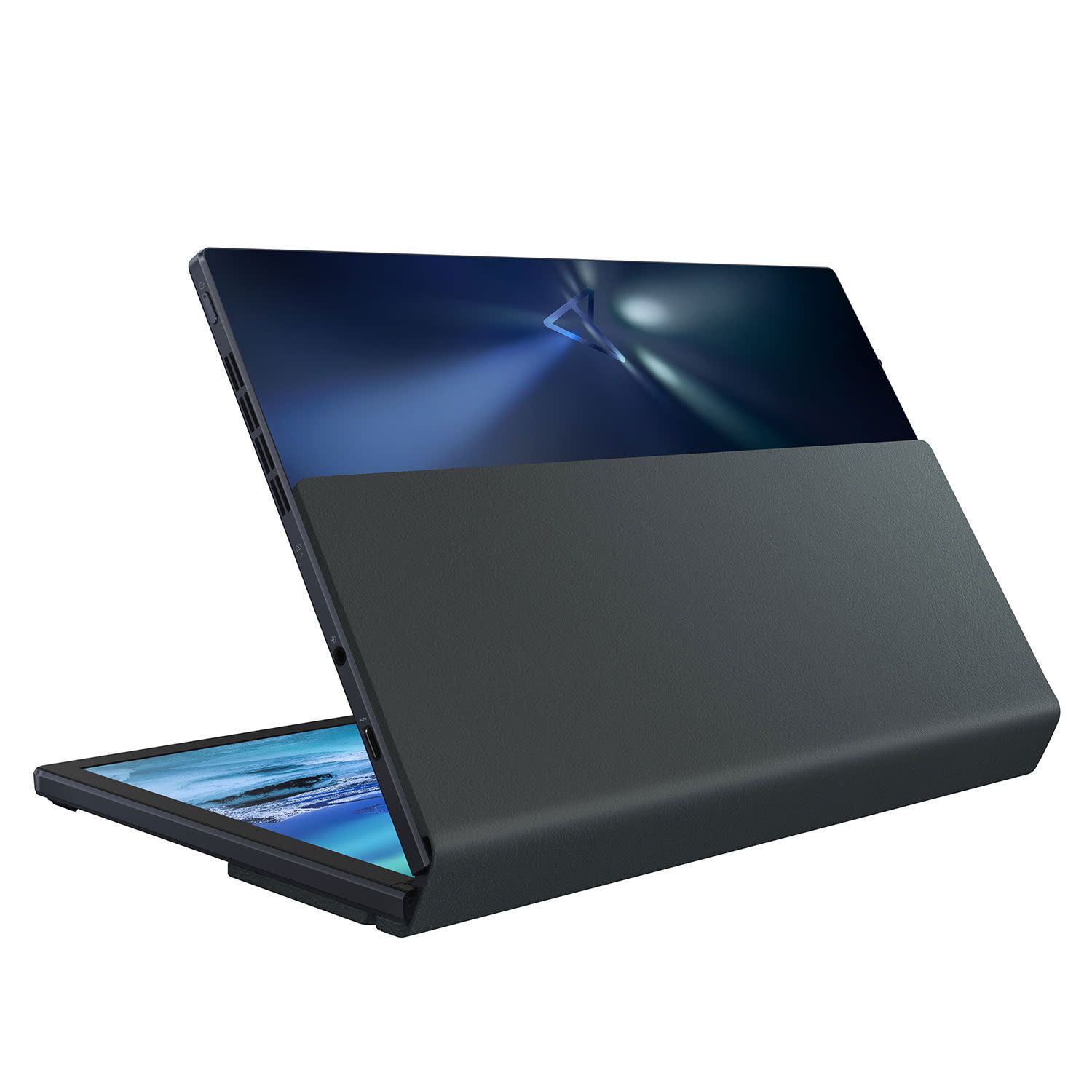 Απλά δίπλωσε την οθόνη και… αυτό ήταν όλο! Τώρα έχετε στα χέρια σας ένα συμπαγές φορητό σύστημα 12,5 ιντσών, μικρότερο κι από ένα φύλλο χαρτιού που μάλιστα είναι και λεπτό αφού έχει προφίλ μόλις 17,4mm. Κατασκευασμένο από κράμα μαγνησίου, σε Tech Black φινίρισμα με ενσωματωμένο εργονομικό kickstand από συνθετικό δέρμα σε σκούρο πράσινο, το Zenbook 17 Fold OLED έχει προφίλ μόλις 8,7mm όταν είναι ανοιχτό, ζυγίζει 1,5 κιλά χωρίς το πληκτρολόγιο και 1,8 κιλά με το πληκτρολόγιο.