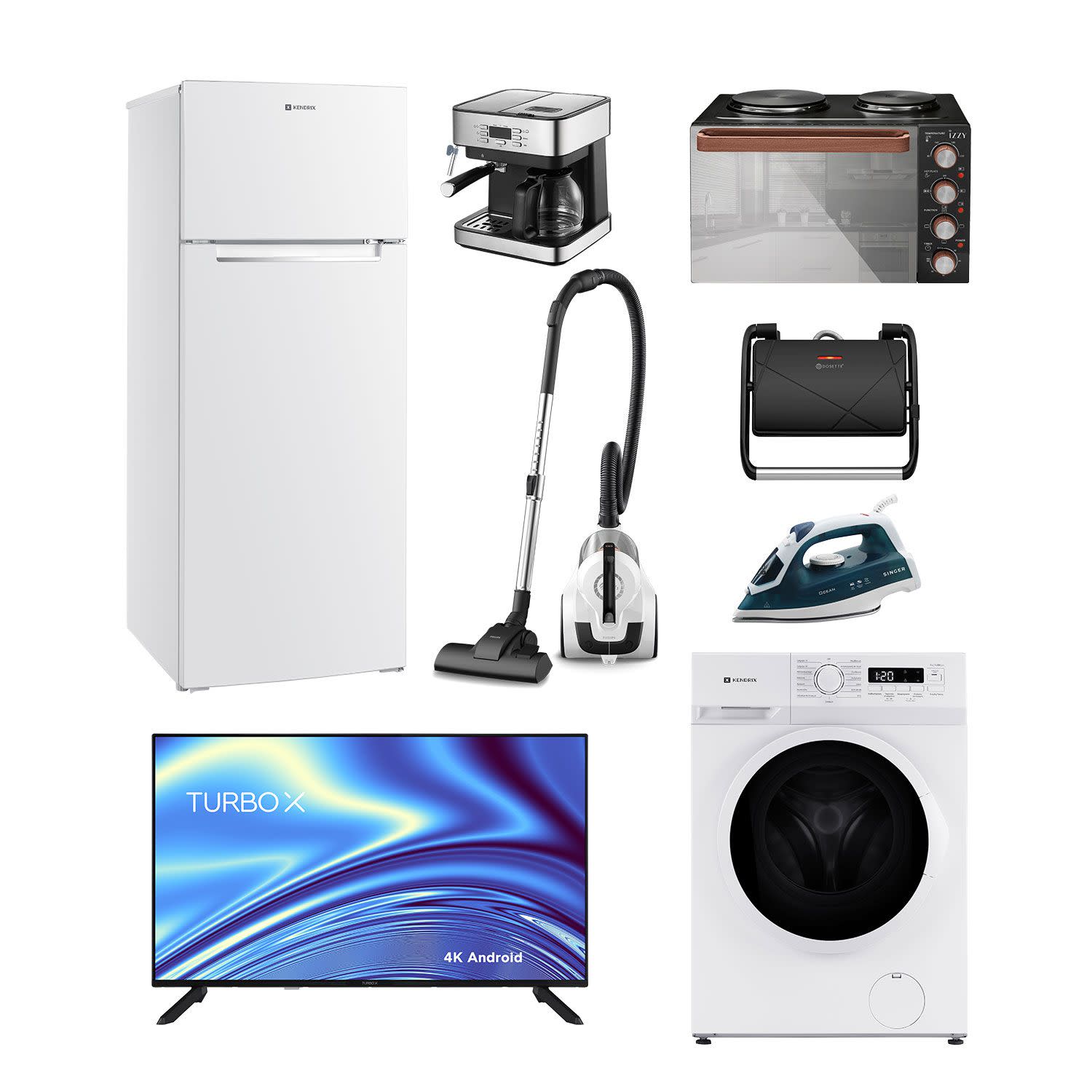 Το σετ περιλαμβάνει: Izzy Φουρνάκι IZ-8009 (4519876), Kendrix Δίπορτο Ψυγείο RPL-228FTH (3534421), Kendrix Πλυντήριο Ρούχων MFN70 7kg (4514505), Dosette Σαντουιτσιέρα H-802D (4628829), Dosette Πολυκαφετιέρα D2502 (3942473), Philips Σκούπα Με Κάδο XB1111/10 (4845048), Singer Σίδερο Ατμού STI-1715 OCEAN (3880079), Turbo-X 4K Android TV 43" 43AS70T (4734262).