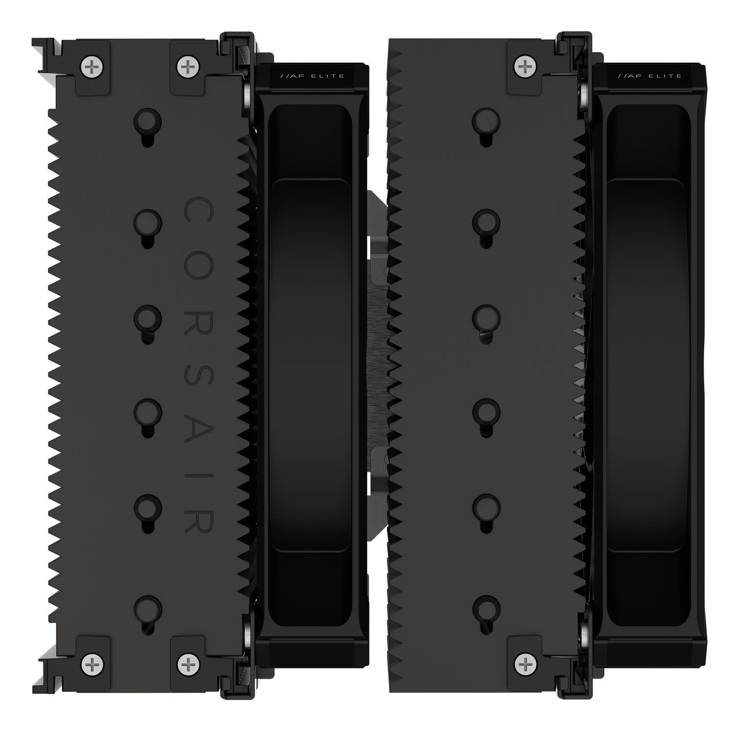 Οι δύο ανεμιστήρες υψηλής απόδοσης AF140 ELITE 140 mm με τεχνολογία CORSAIR AirGuide χρησιμοποιούν πτέρυγες που είναι ειδικά σχεδιασμένες για να αποτρέπουν τη δημιουργία στροβιλισμών και να κατευθύνουν ένα υψηλότερης συγκέντρωσης ρεύμα αέρα προς τους δύο πύργους τους ψύκτρας υποστηρίζοντας παράλληλα τη γενικότερη δημιουργίας ρεύματος αέρα στο εσωτερικό του κουτιού του υπολογιστή.