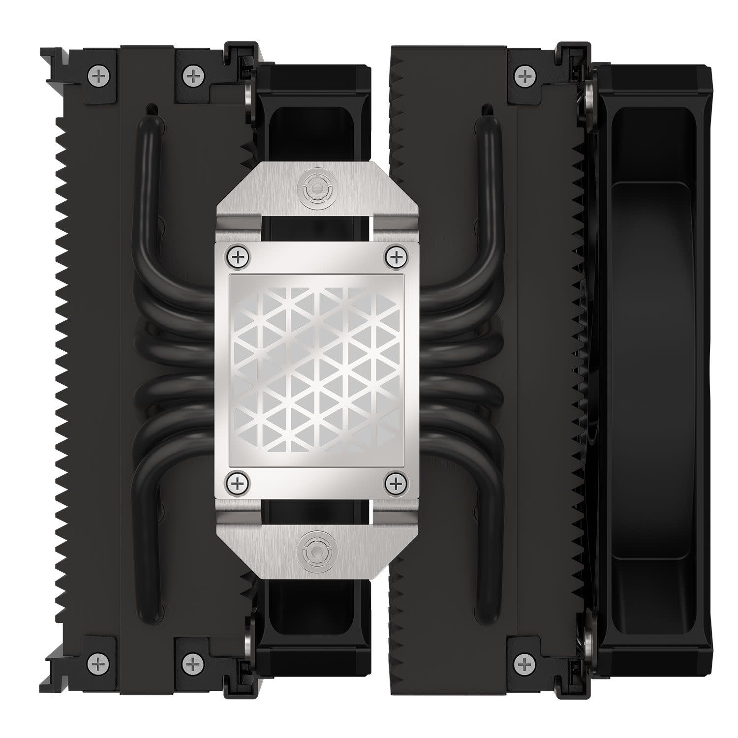 Ψύκτρα υψηλής απόδοσης με σχεδιασμό διπλού πύργου (twin tower) από αλουμίνιο με μαύρου χρώματος φινίρισμα που είναι κατάλληλη για επεξεργαστές τύπου Intel® LGA 1851, 1700, 1200, 1151, 1155 και 1156 ή AMD® ΑΜ4 και AM5.