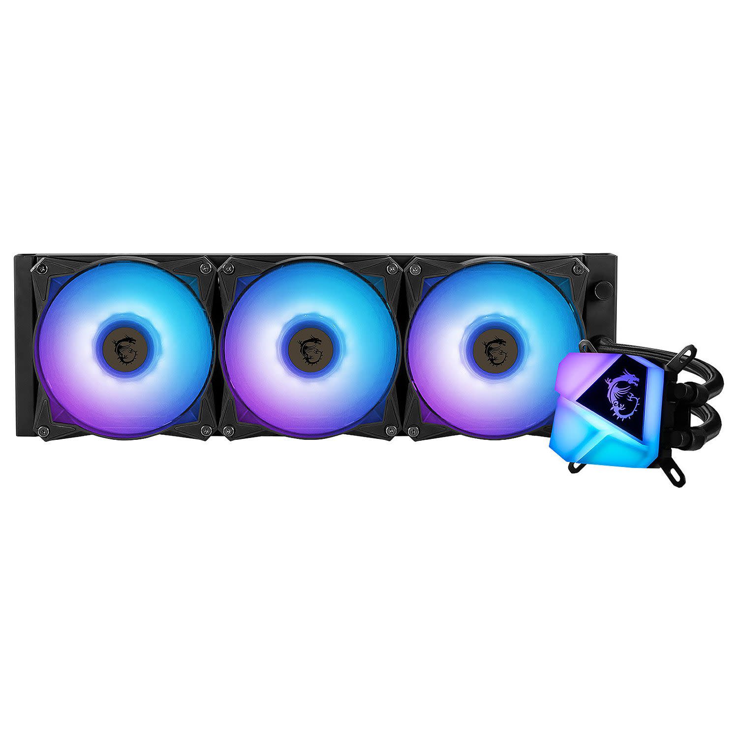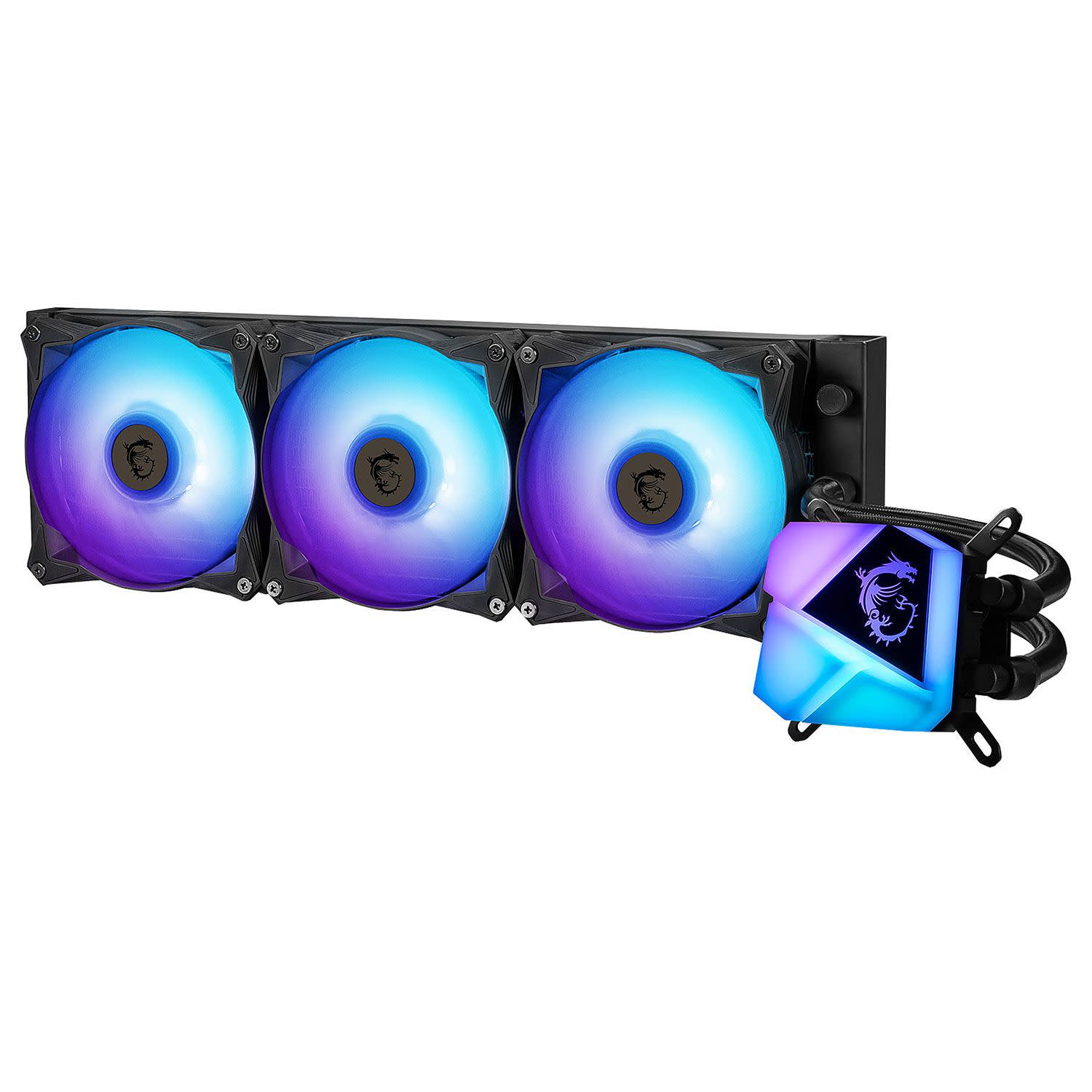 Οι φωτιζόμενοι ανεμιστήρες ARGB PWM (120 x 25mm, 78,73 CFM) και το φωτιζόμενο waterblock με το εμβληματικό λογότυπο της εταιρείας MSI χαρίζουν ξεχωριστή εμφάνιση στον υπολογιστή σου.