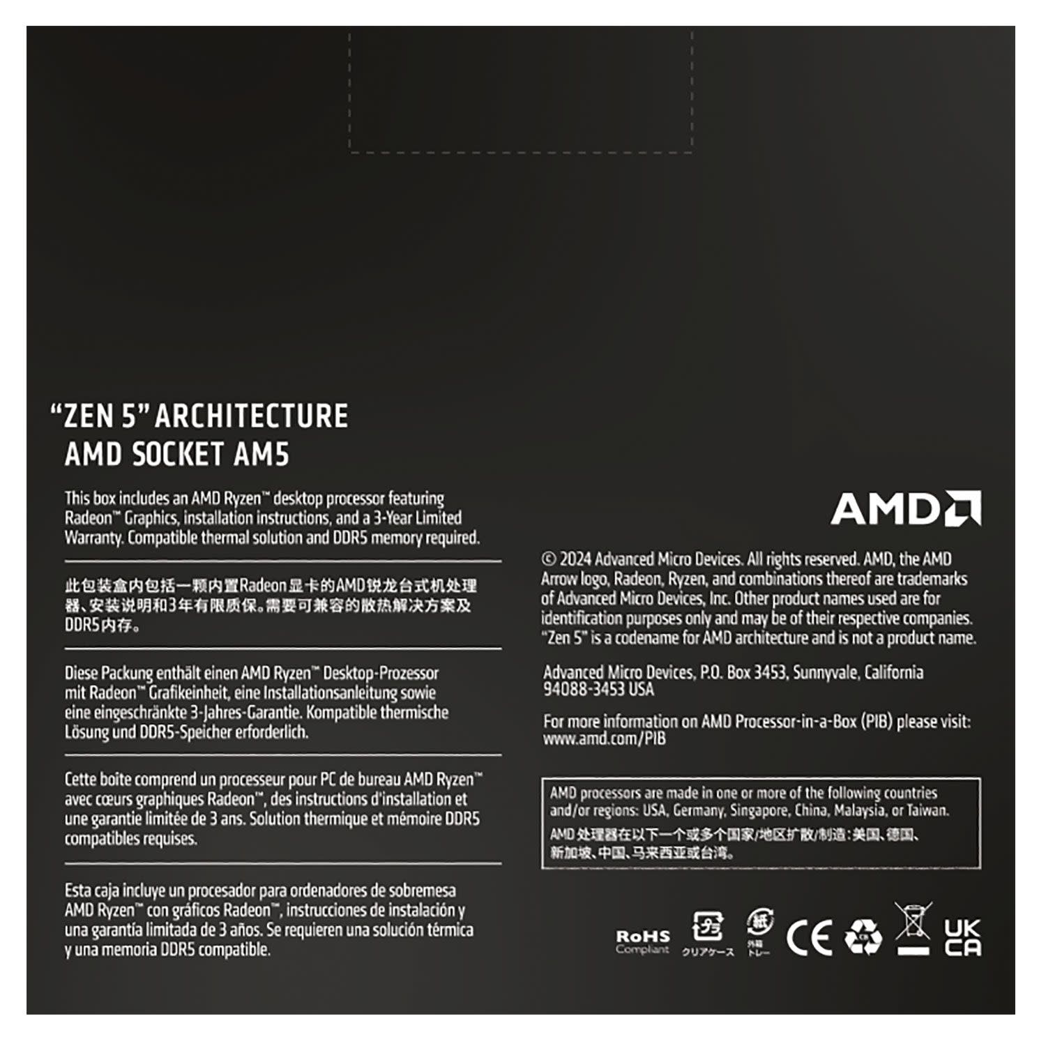 Οι επεξεργαστές AMD Ryzen™ 9000 Series κάνουν χρήση της γνωστής από τη προηγούμενη γενιά βάσης LGA (Land-Grid Array) με τους 1.718 ακροδέκτες (pins) που έχει την ονομασία Socket AM5 με την πλατφόρμα της AMD να παρέχει υποστήριξη στη μνήμη DDR5-5600 διπλού καναλιού (υποστηρίζονται και υψηλότερα χρονισμένα αρθρώματα μνήμης μέσω AMD EXPO™) και στον δίαυλο PCIe® 5.0 ενώ ενσωματώνουν και γραφικά AMD Radeon™ (με δύο υπολογιστικές μονάδες RDNA™2 και συχνότητα λειτουργίας 2,2 GHz) για βασικές εργασίες.